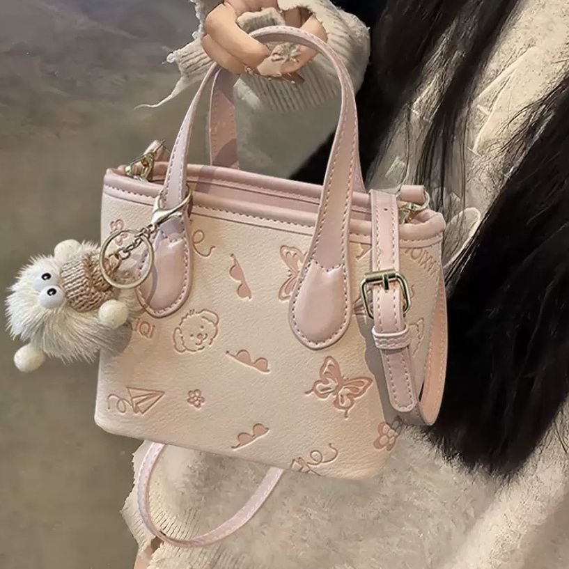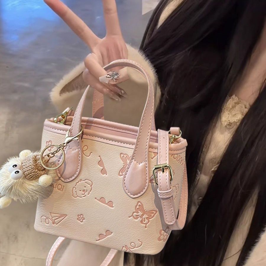 粉色水桶包包女2026新款大气小个子感轻奢超火小众斜挎