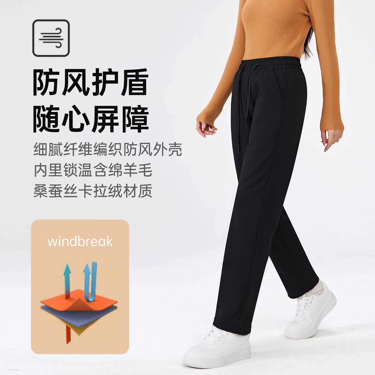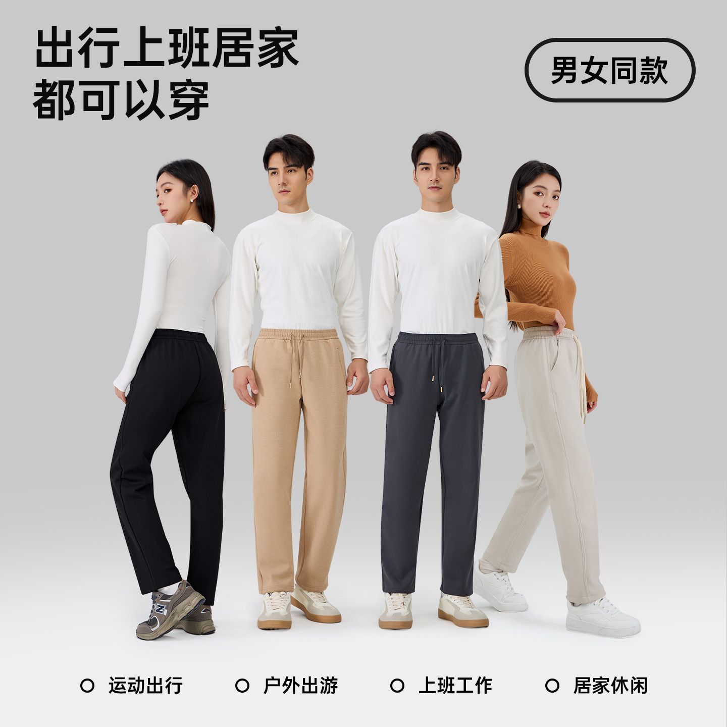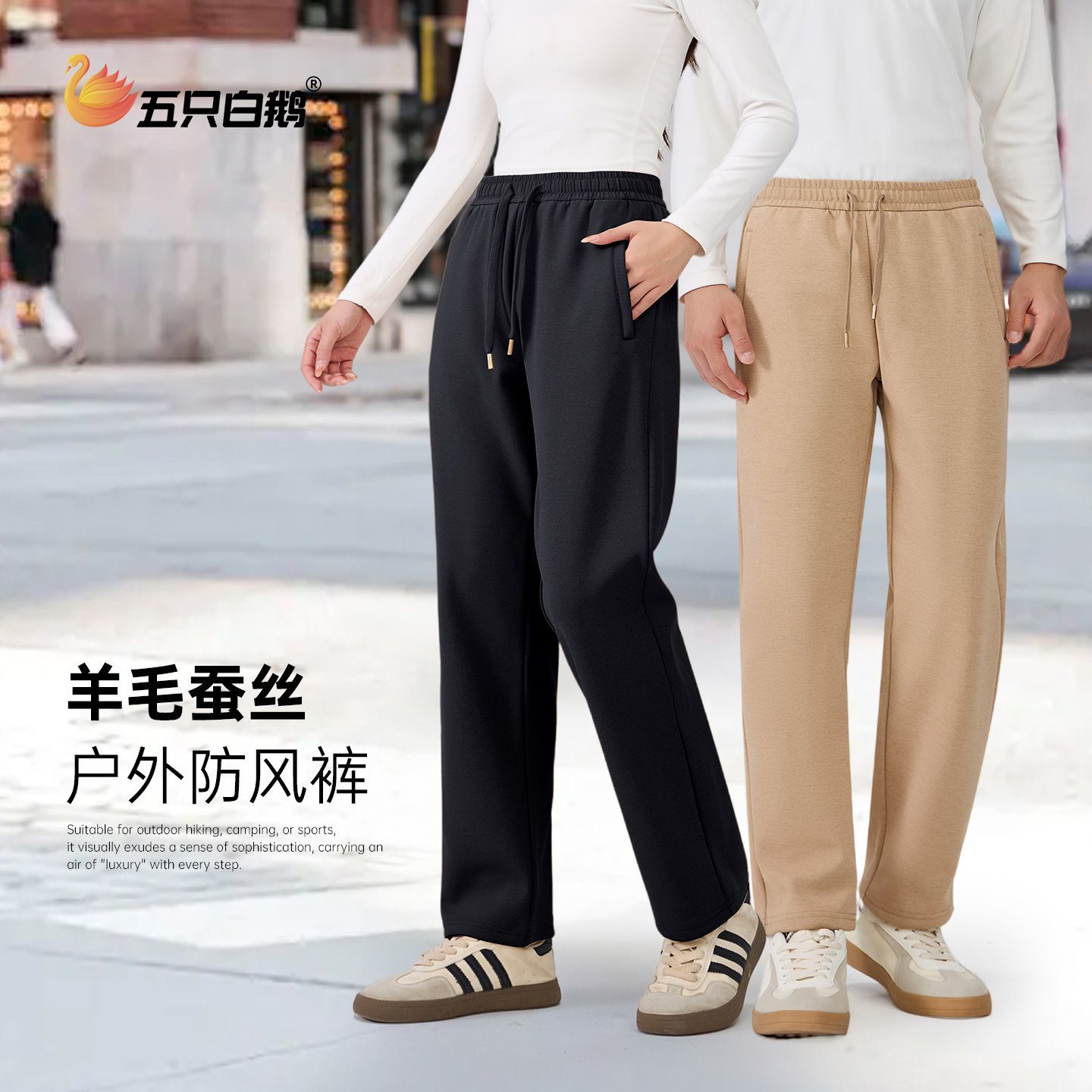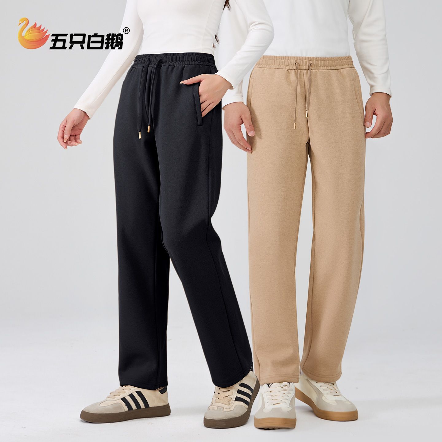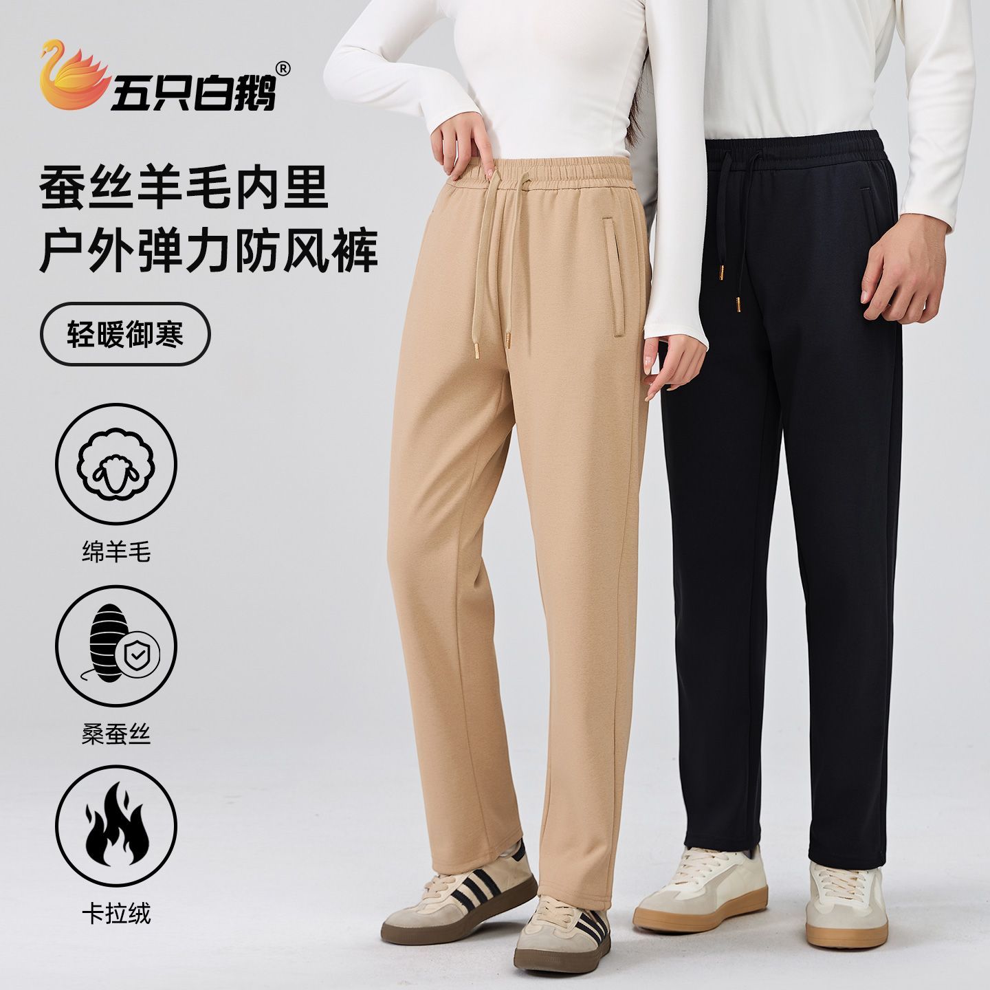 五只白鹅男女通用2025秋冬季休闲裤加绒加厚防风裤弹力运动长裤子