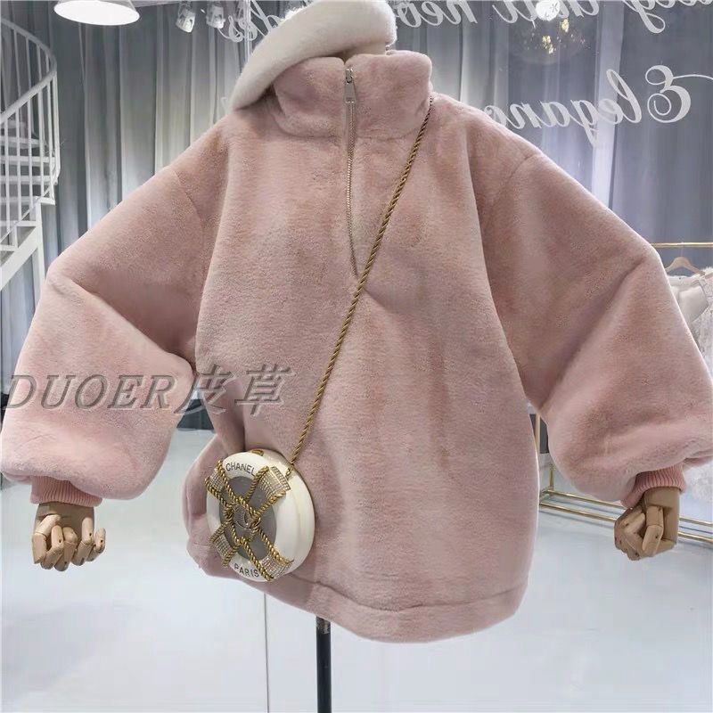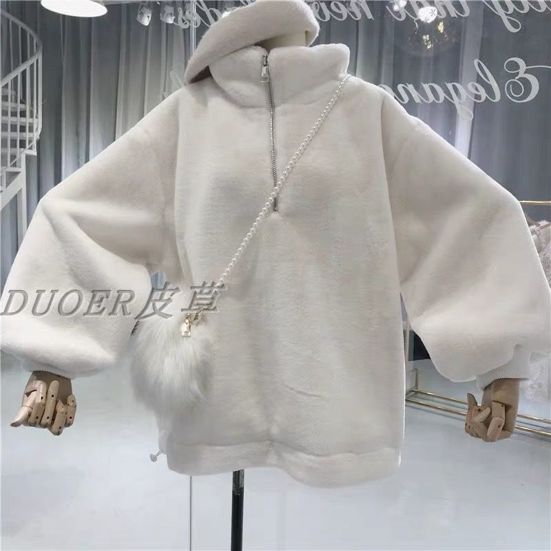 防寒慵懒风秋冬款ins韩版加厚保暖棉衣套头毛毛外套卫衣女新款