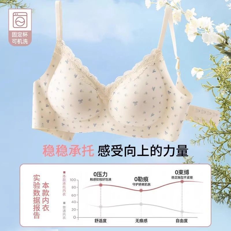 【都市丽人】蕾丝女士碎花小胸内衣法式清新甜美纯欲性感聚拢文胸【4天内发货】