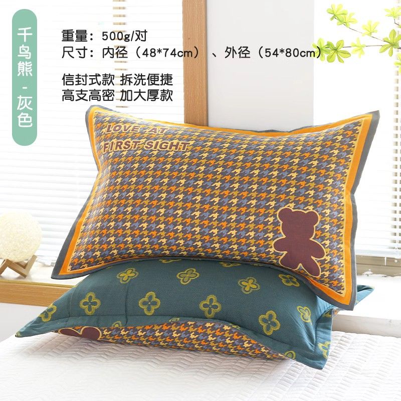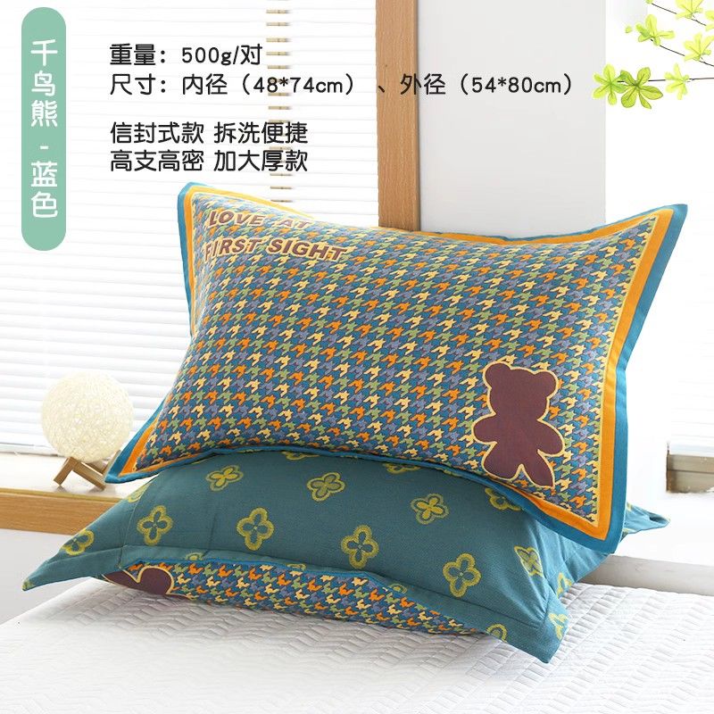 全包纯棉纱布枕套成人一对装高档卡通柔软透气防滑加厚全棉枕头套