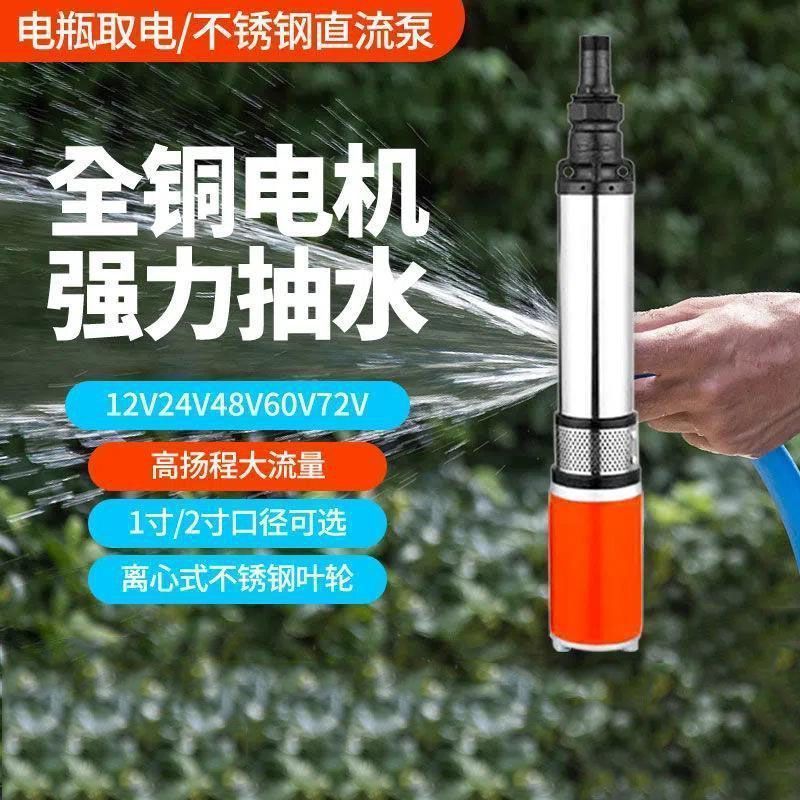 直流深井泵农田浇灌电瓶泵电动车泵高扬程抽水泵深水井直流潜水泵