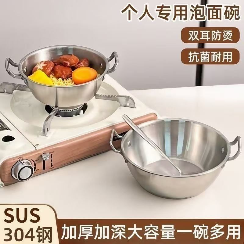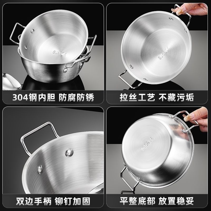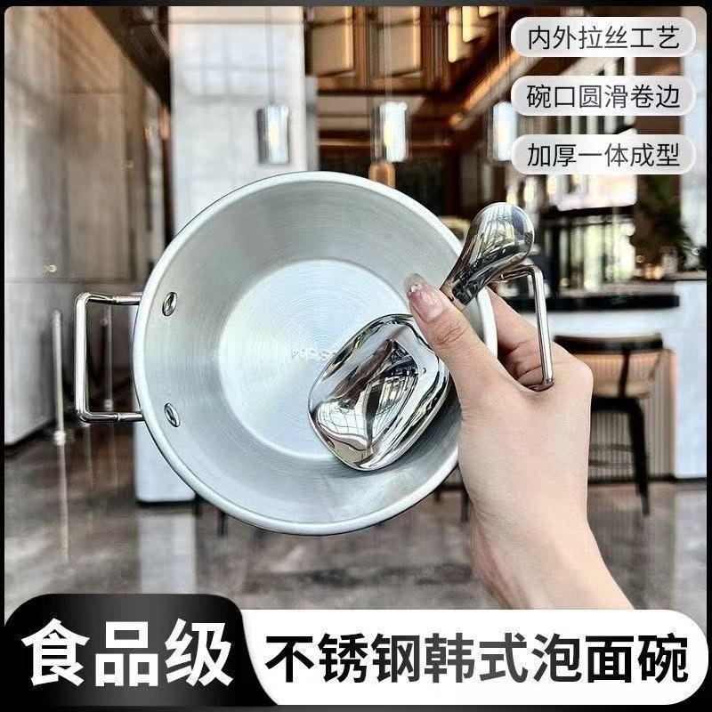 【爆款/送勺】食品级不锈钢特厚家用韩式米酒碗配大头勺小吃盆