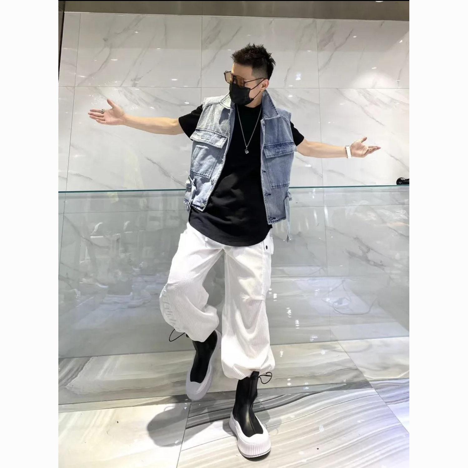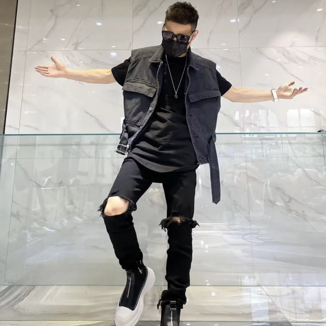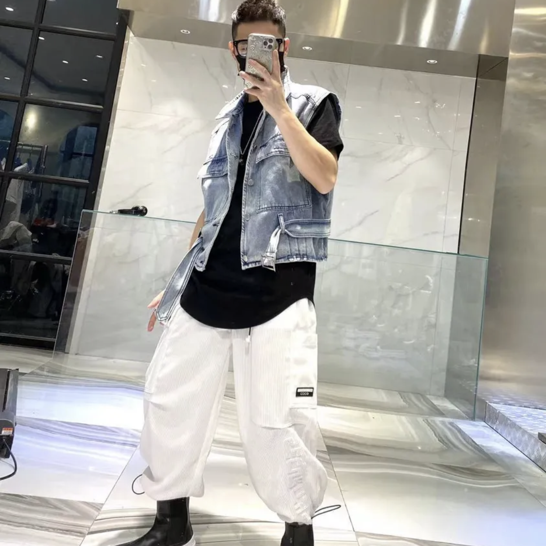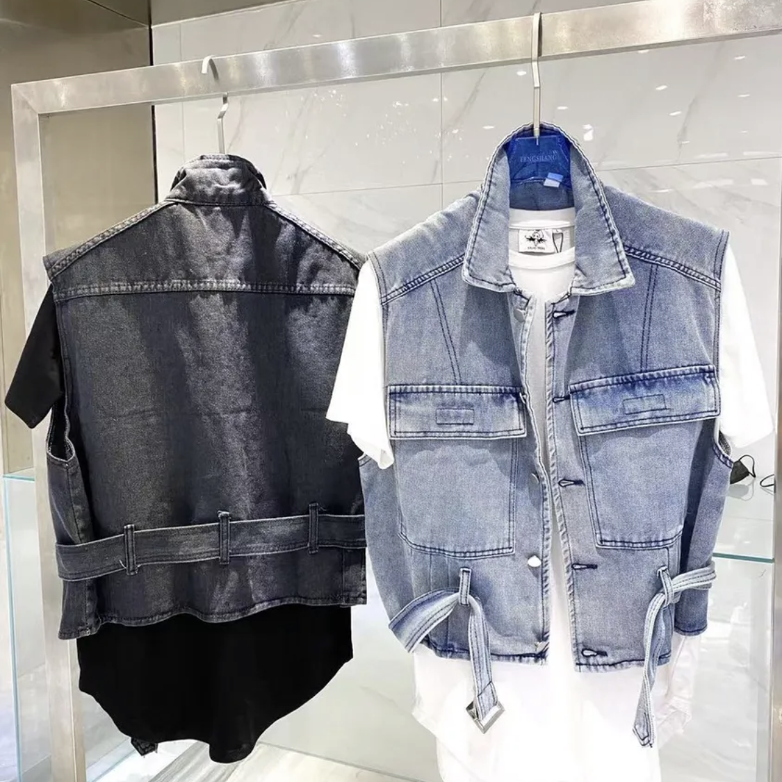 韩版嘻哈牛仔背心马甲男女百搭小众宽松复古短款情侣坎肩上衣外搭