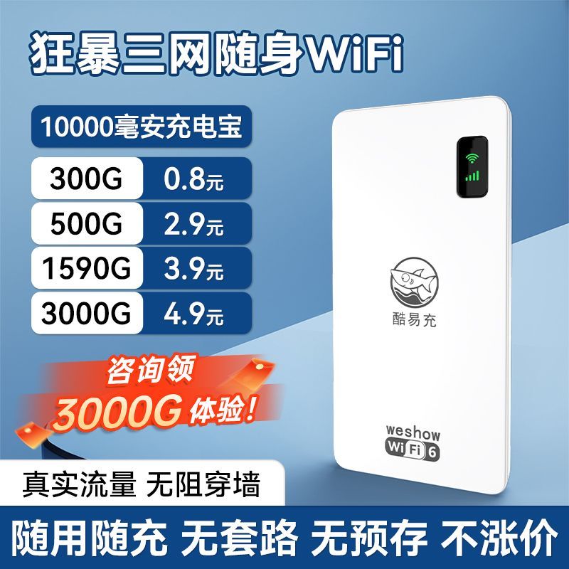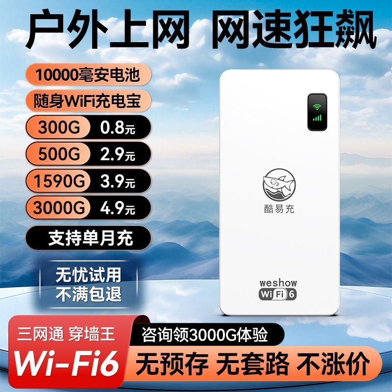2026三网通随身WiFi6无线网1万毫安续航热点移动路由器4g户外车载