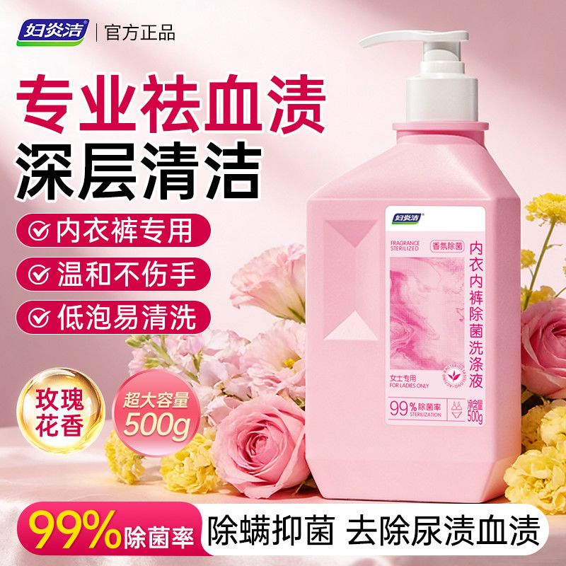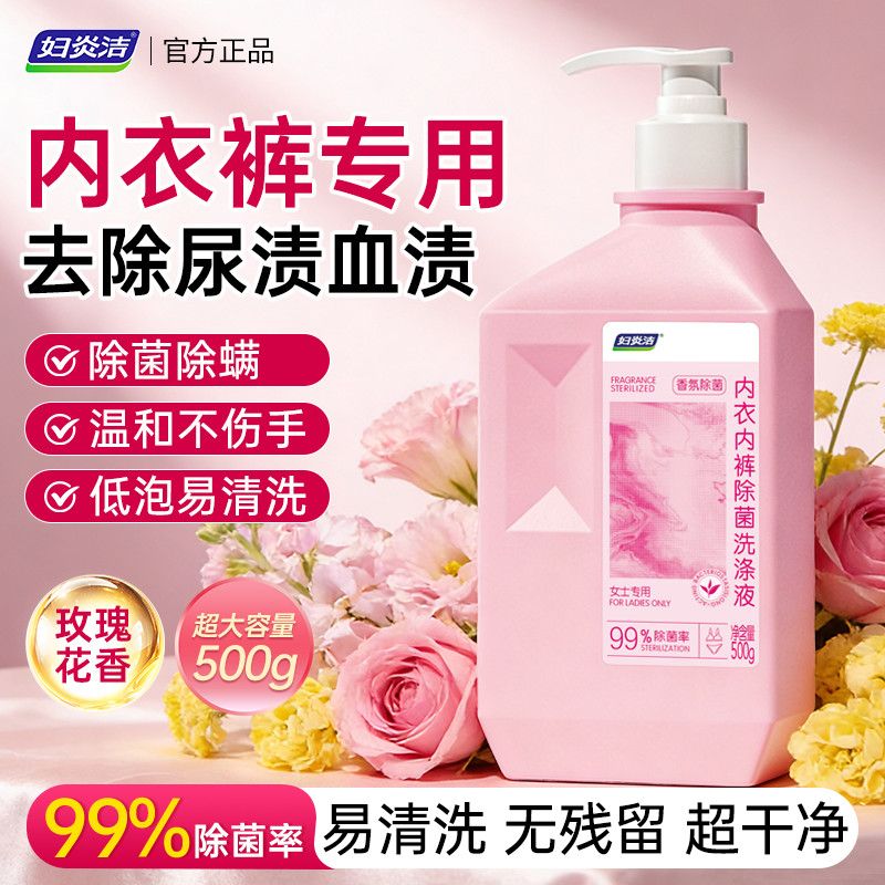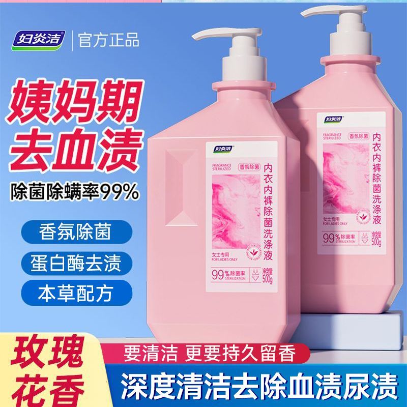 妇炎洁内裤洗衣液除菌除螨去污姨妈去血渍女士内衣清洗液持久留香