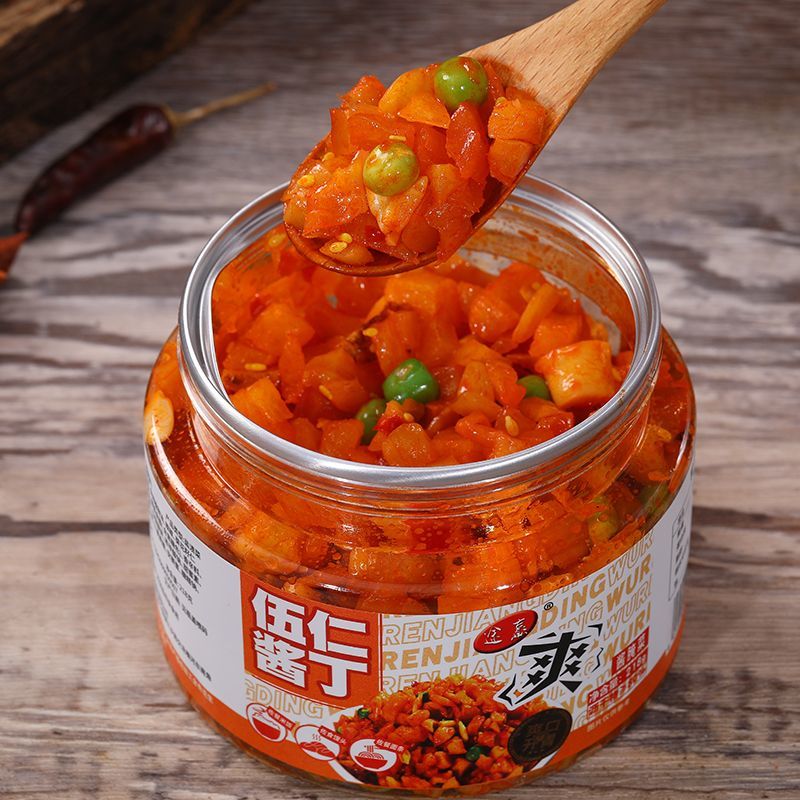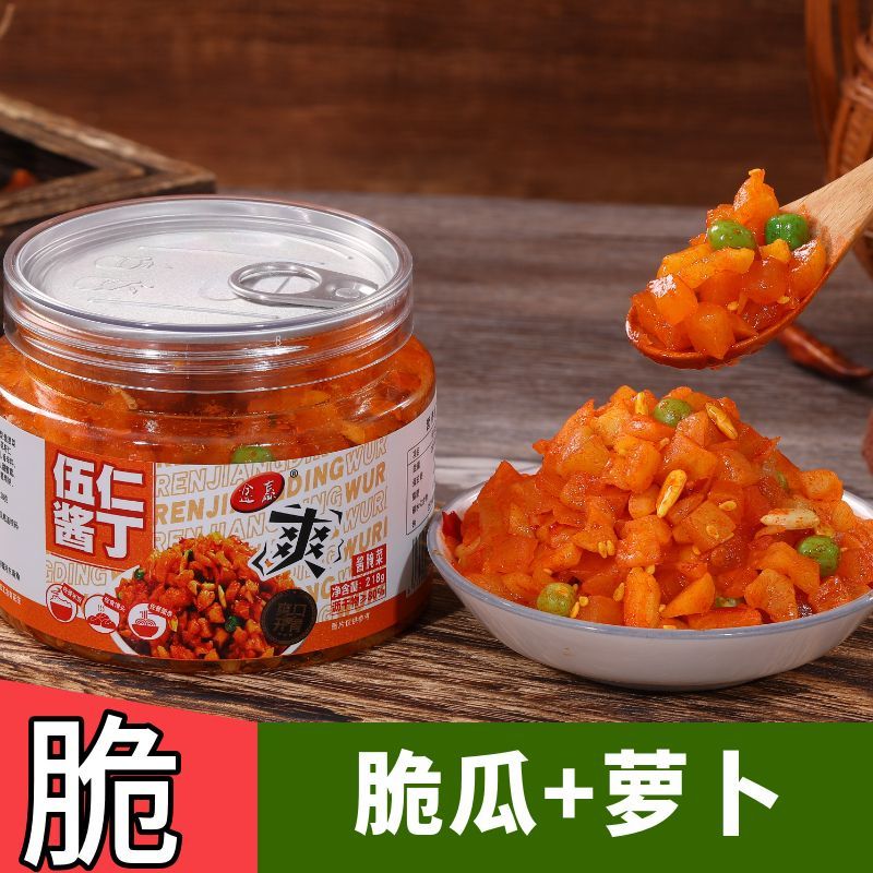 香辣五仁萝卜干萝卜下饭菜嘎嘣脆微微辣瓶装酱菜香脆罐装即食咸菜