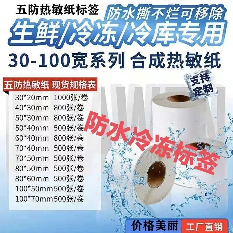 定制五防冷冻防水热敏纸合成纸印刷标签定制防水标签贴