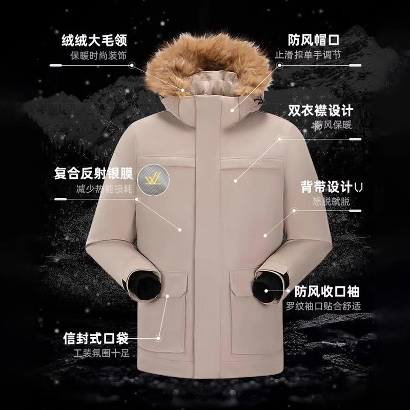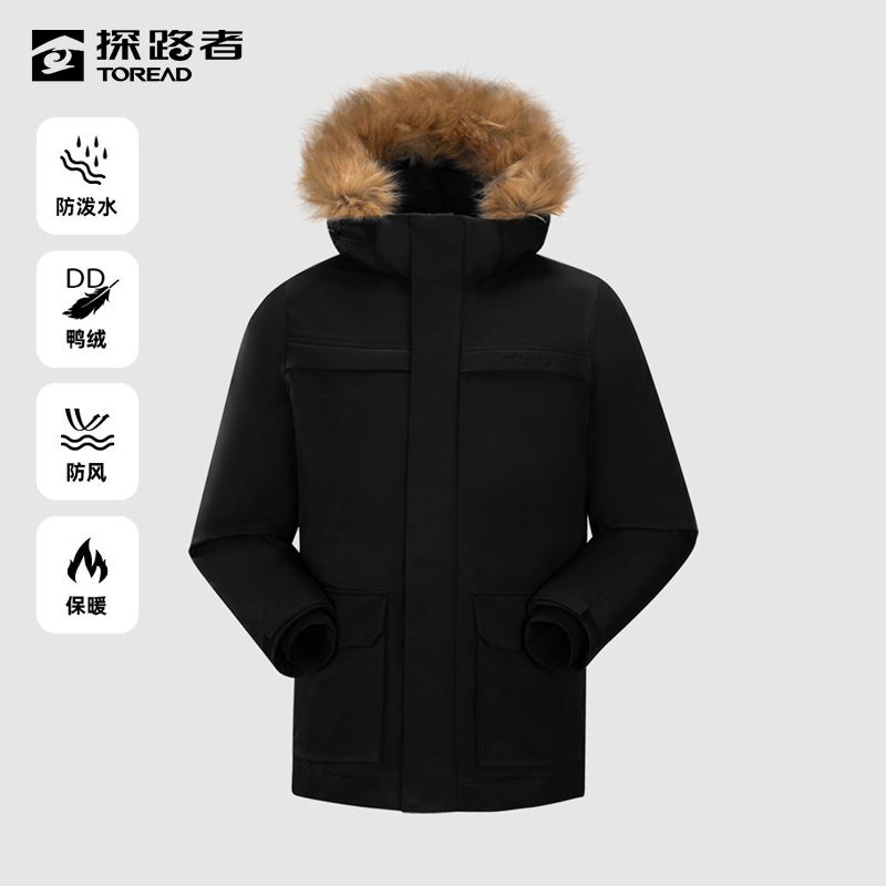 探路者派克羽绒服男式秋冬季户外防风防泼水加厚蓄热保暖羽绒外套