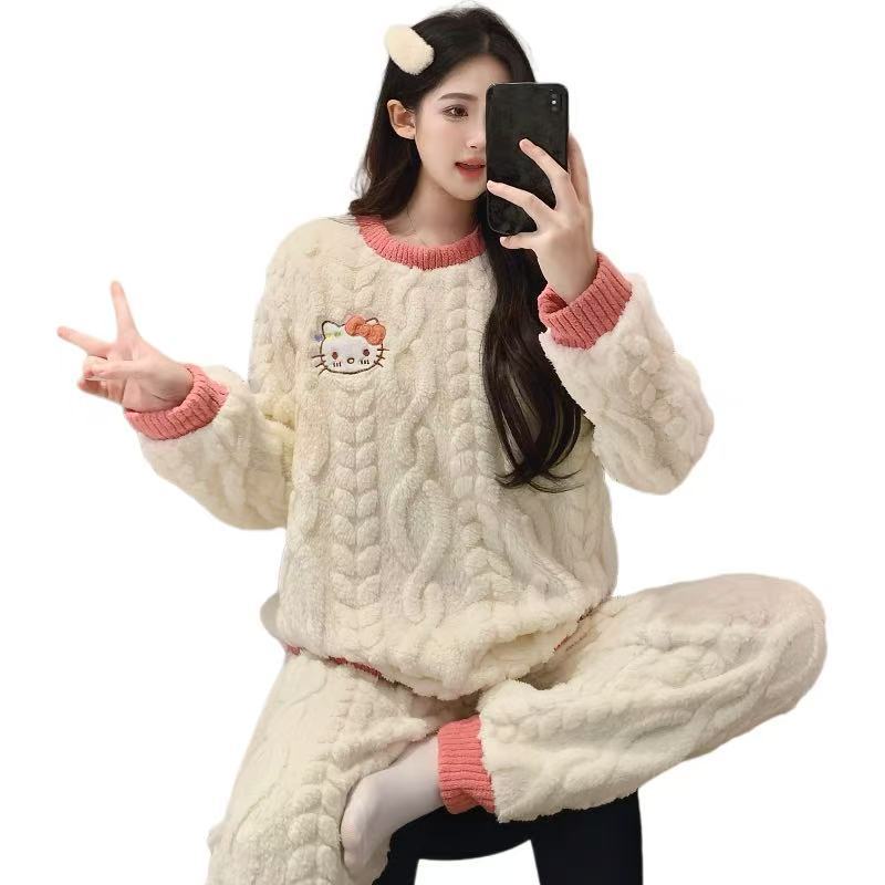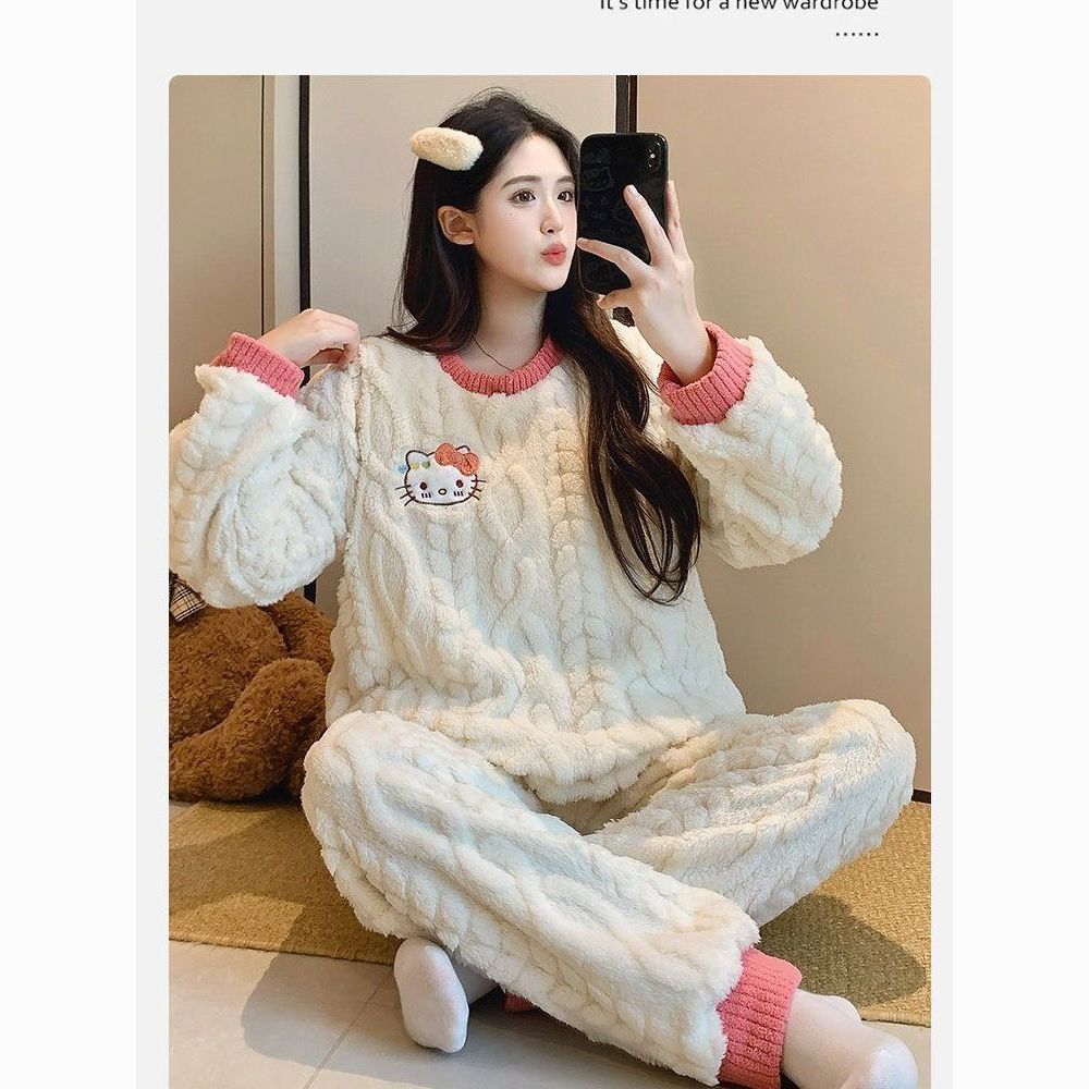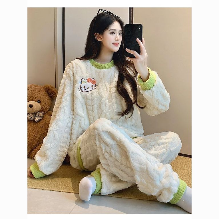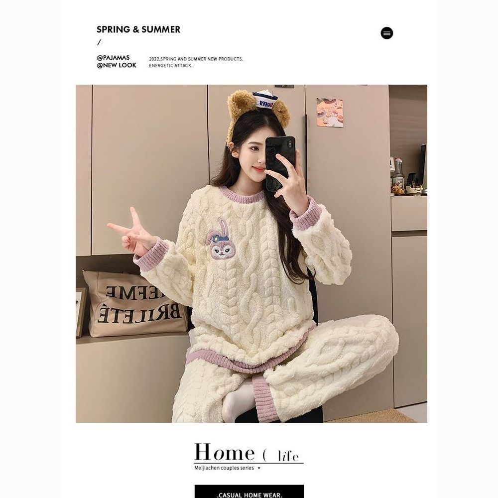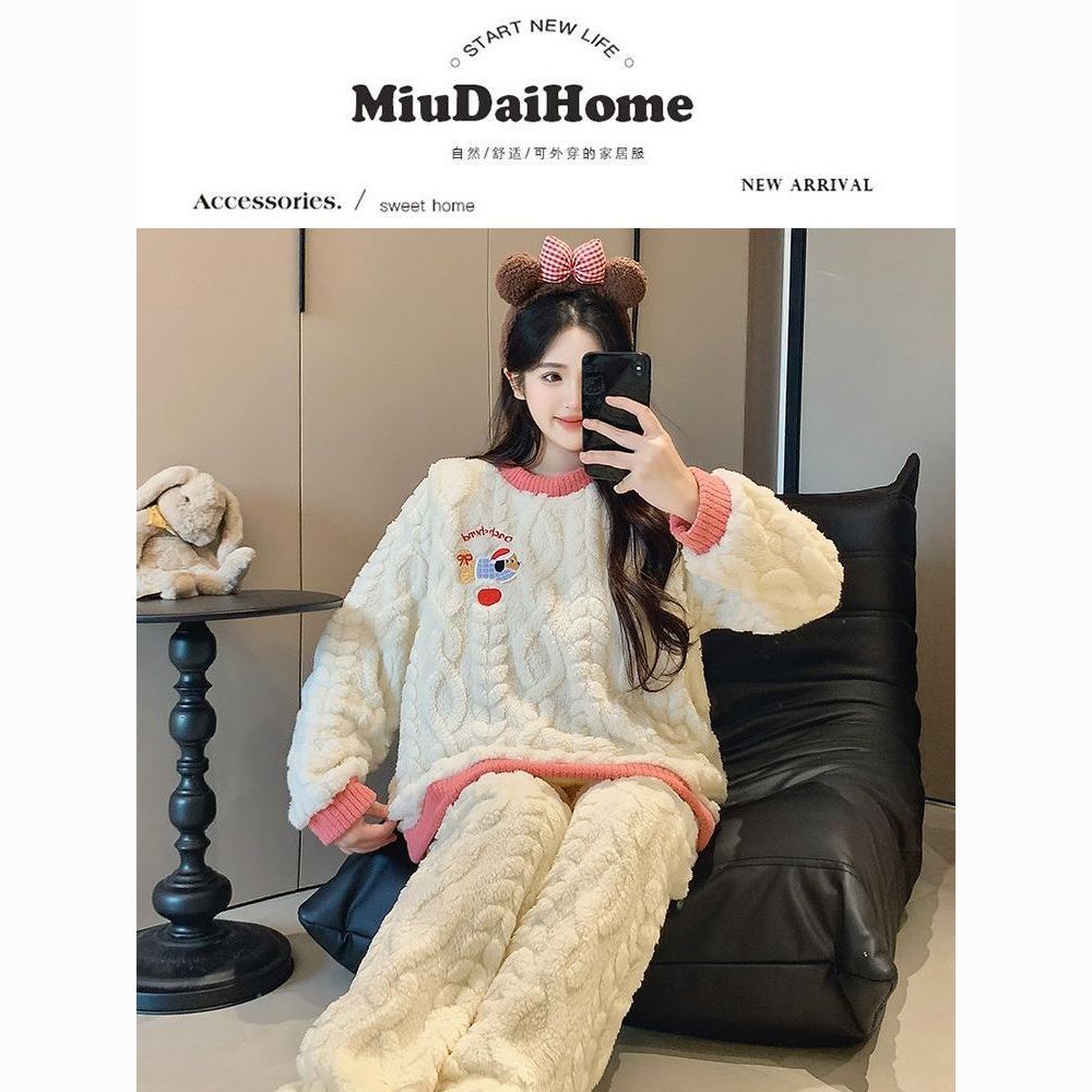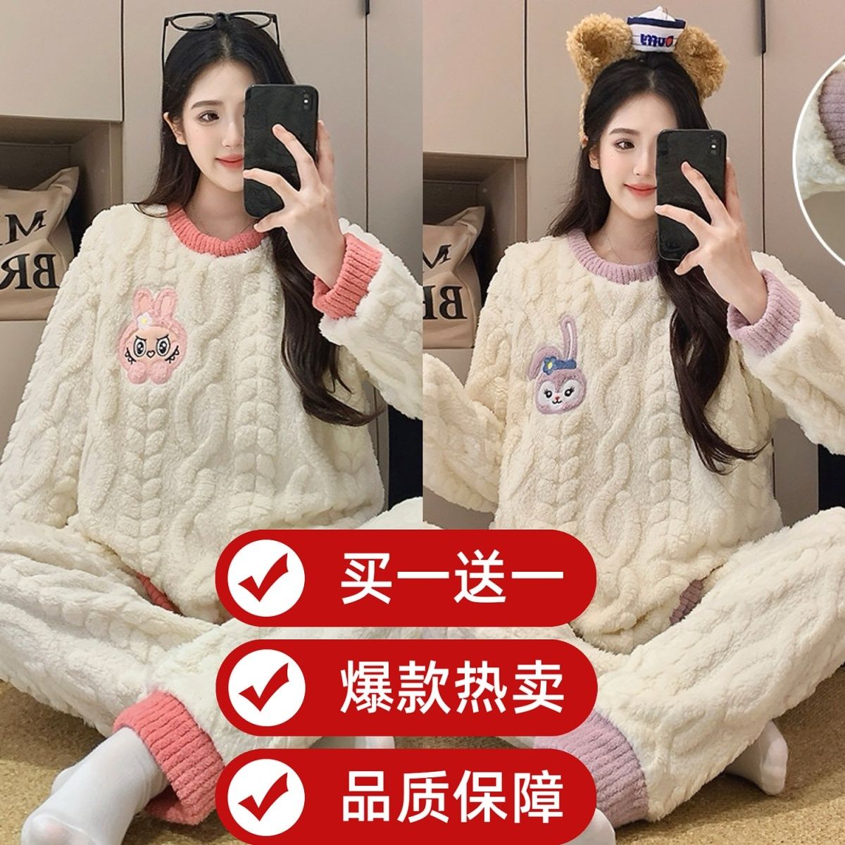 【买一送一】秋冬珊瑚绒睡衣女加绒长袖长裤套装宿舍家居服可外穿