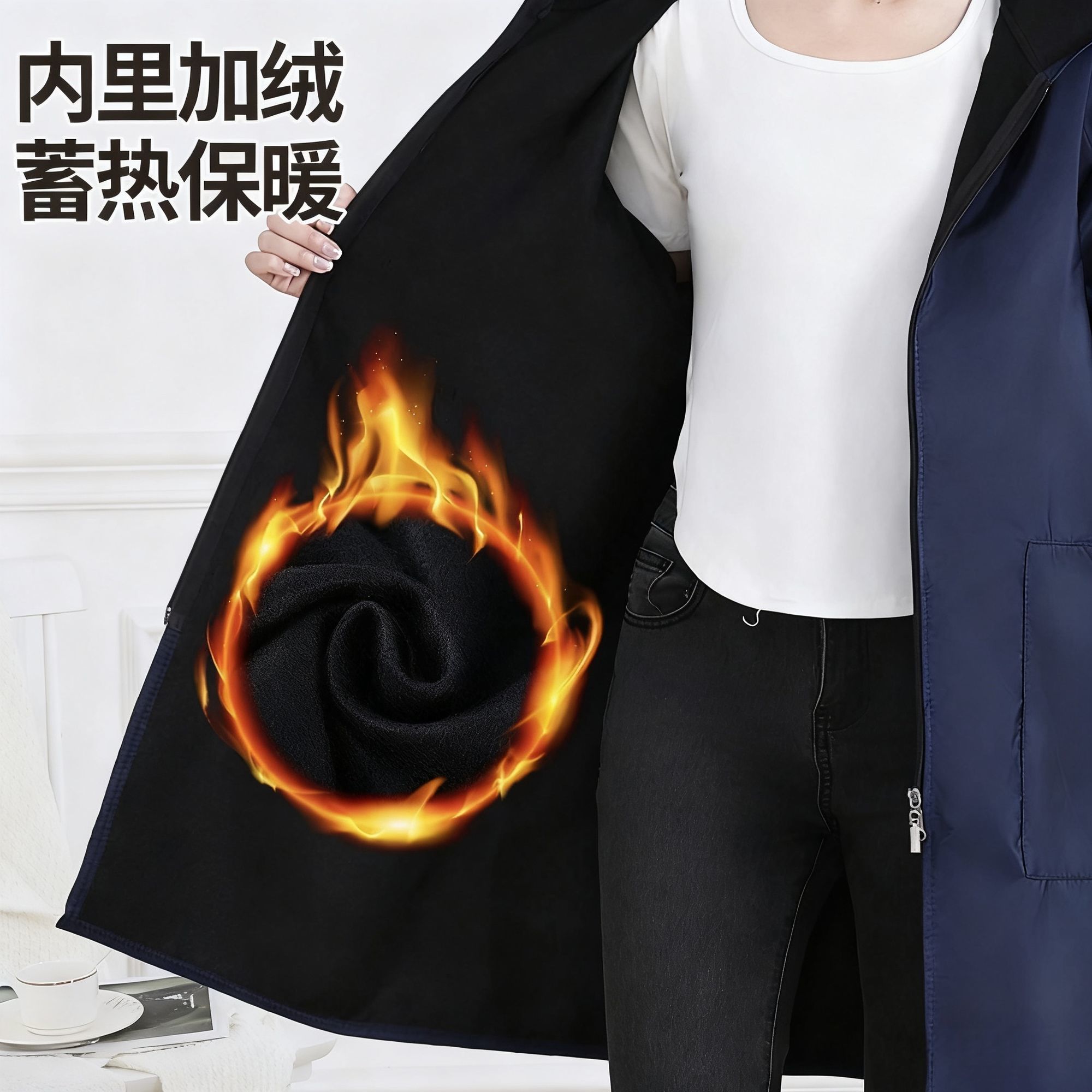 批发印字冬季新款加绒防水防油耐脏男女同款长袖半身围裙罩衣耐磨
