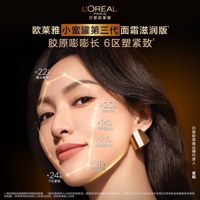 欧莱雅新花蜜胶原轻盈面霜小蜜罐秋冬季补水保湿弹嫩提亮紧致抗皱