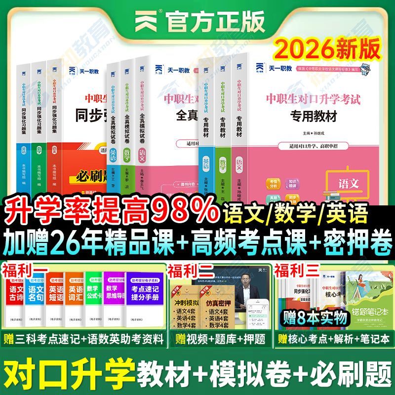 2026中职生对口升学考试必刷题语数英教材试卷高职单招职高资料