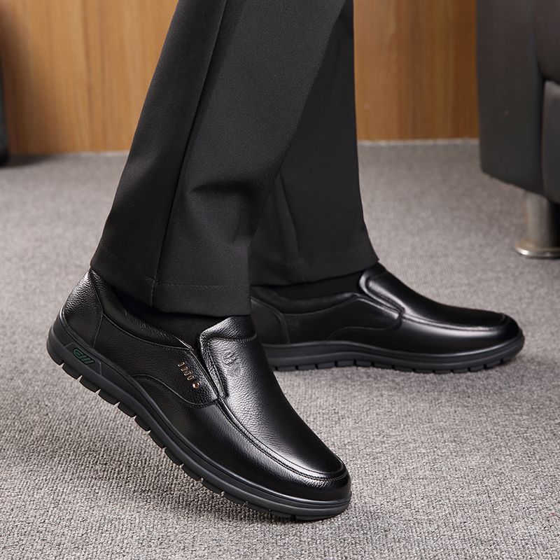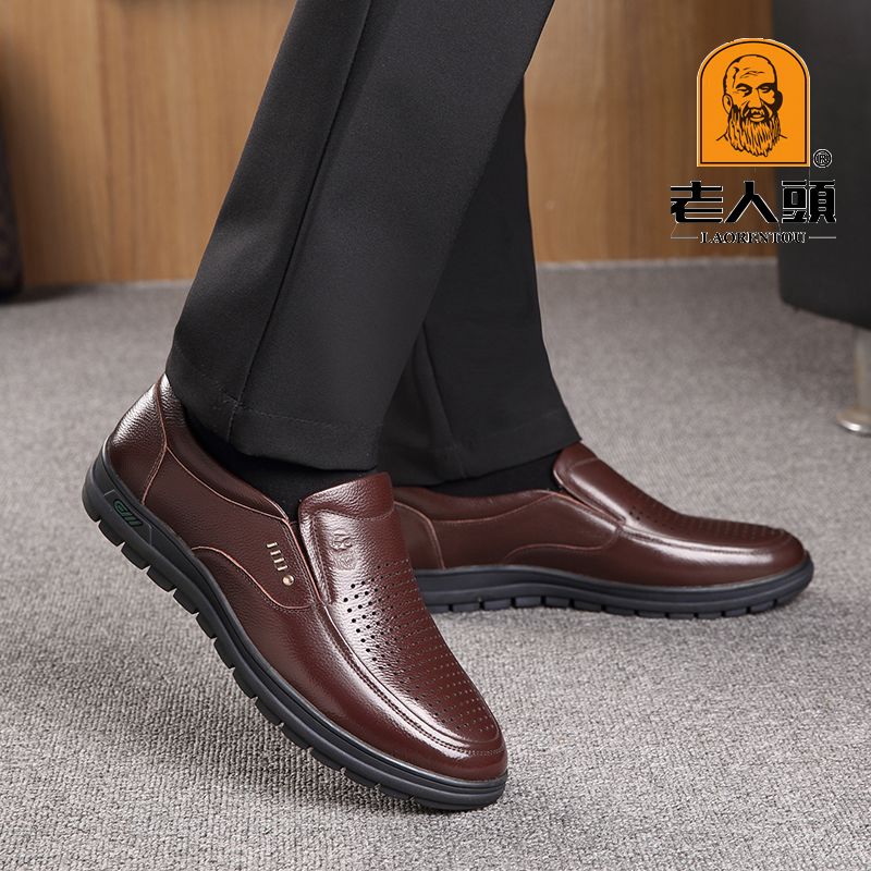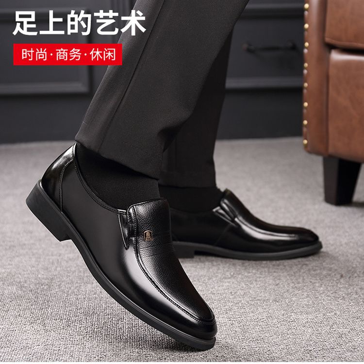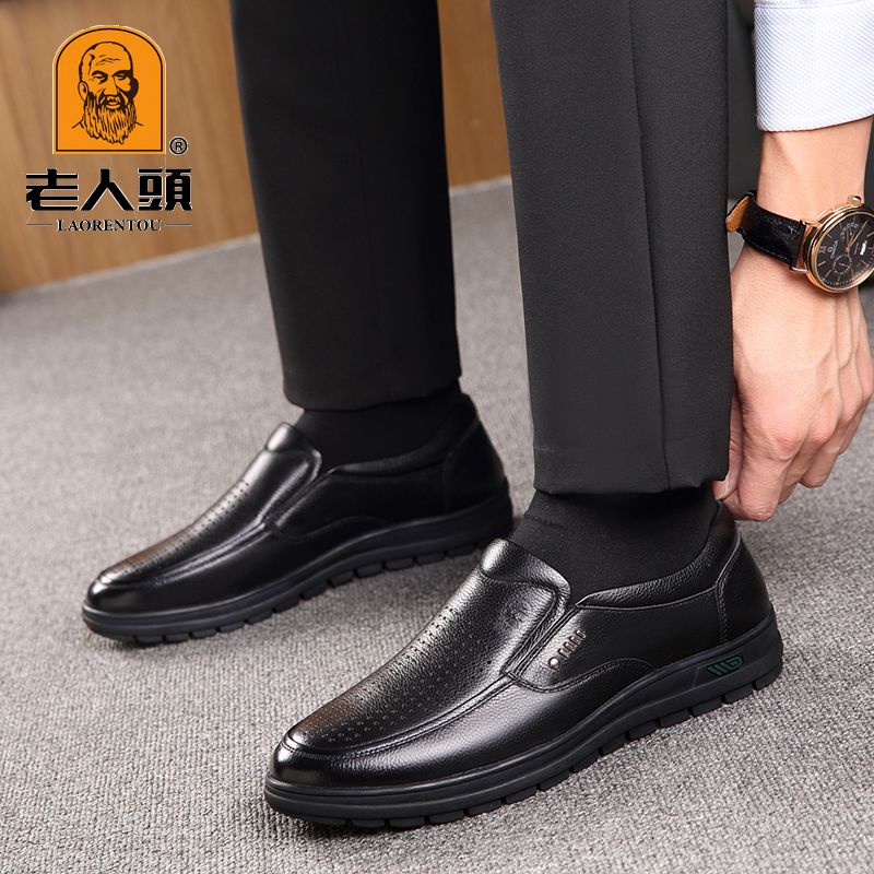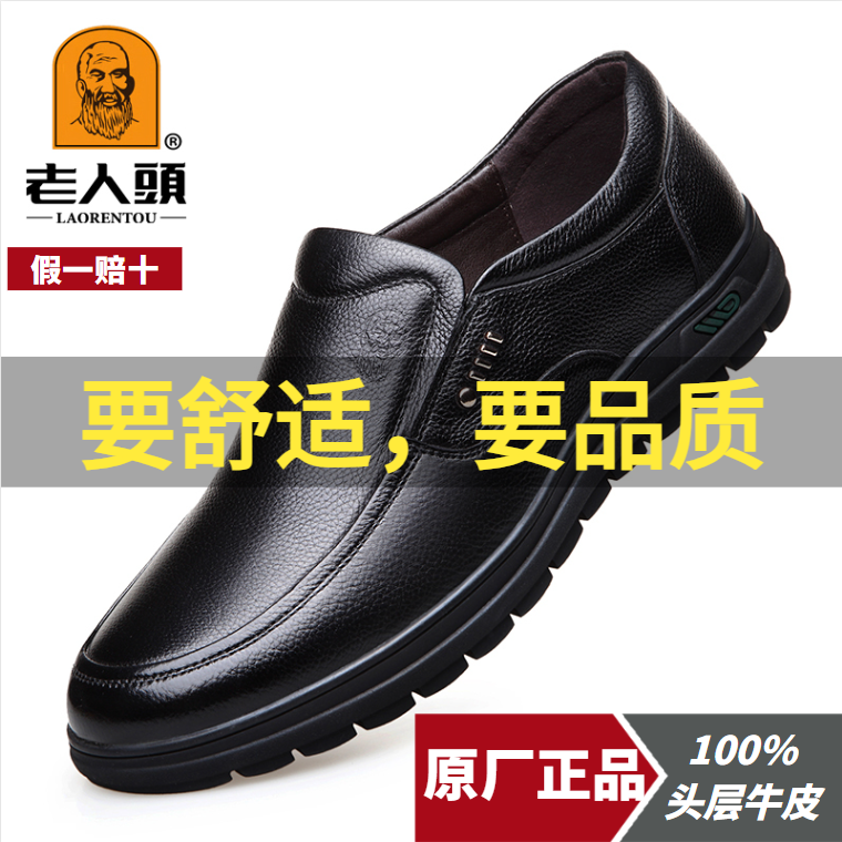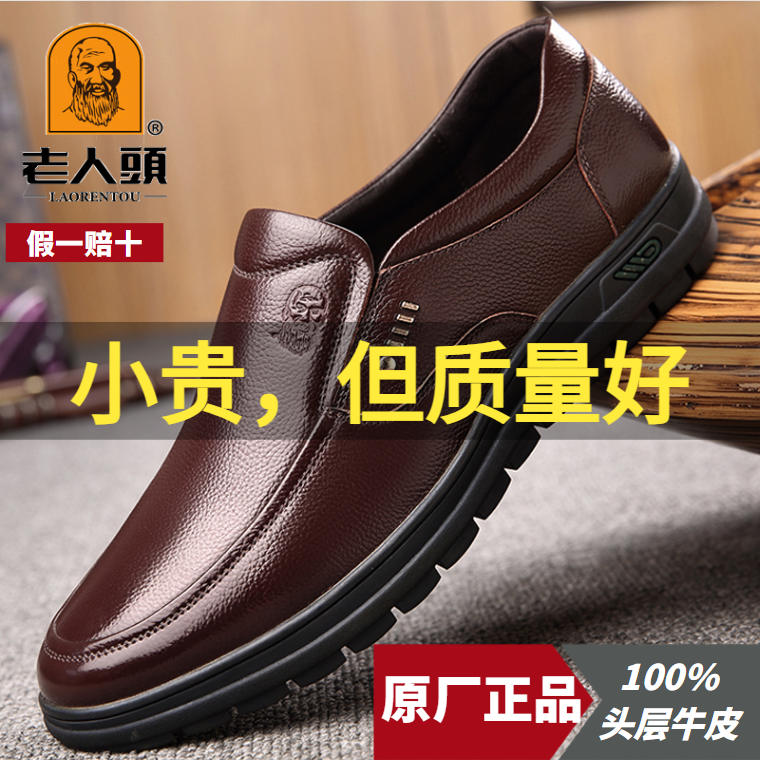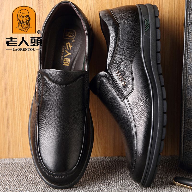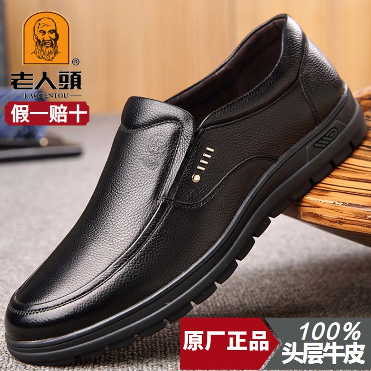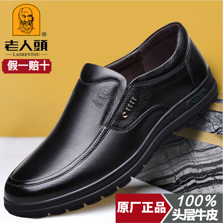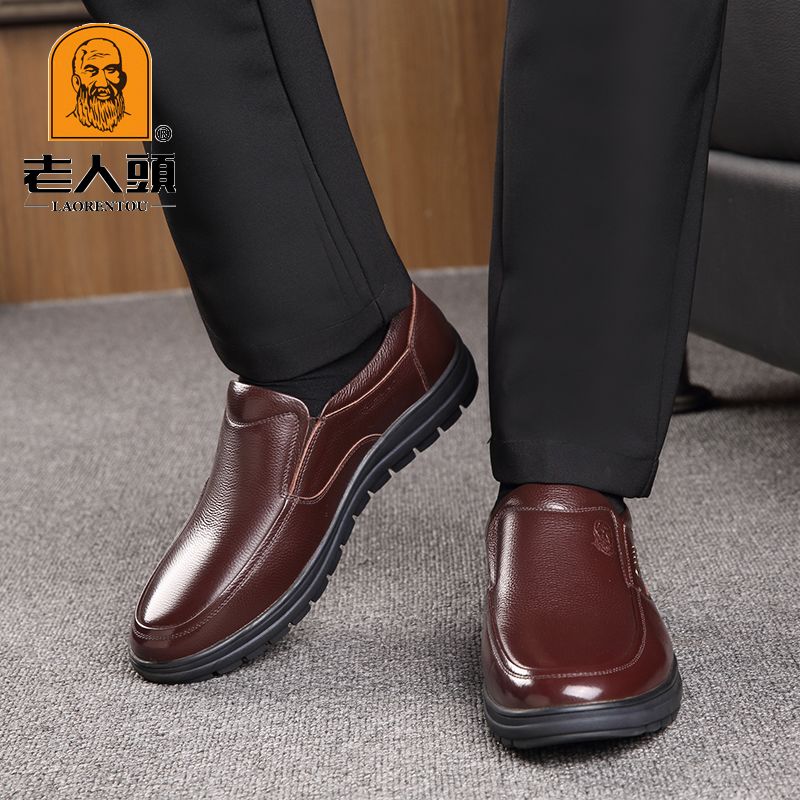 老人头皮鞋中老年爸爸鞋套脚防滑牛皮鞋男真皮耐磨休闲鞋软底软皮