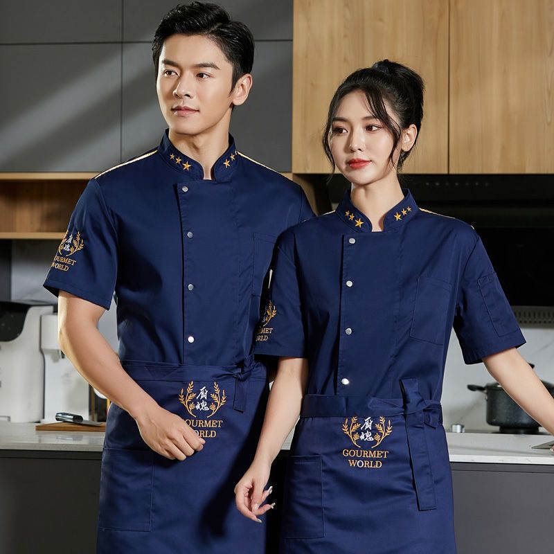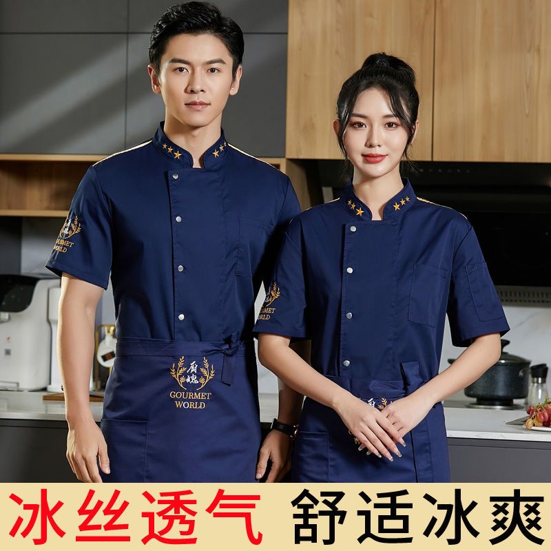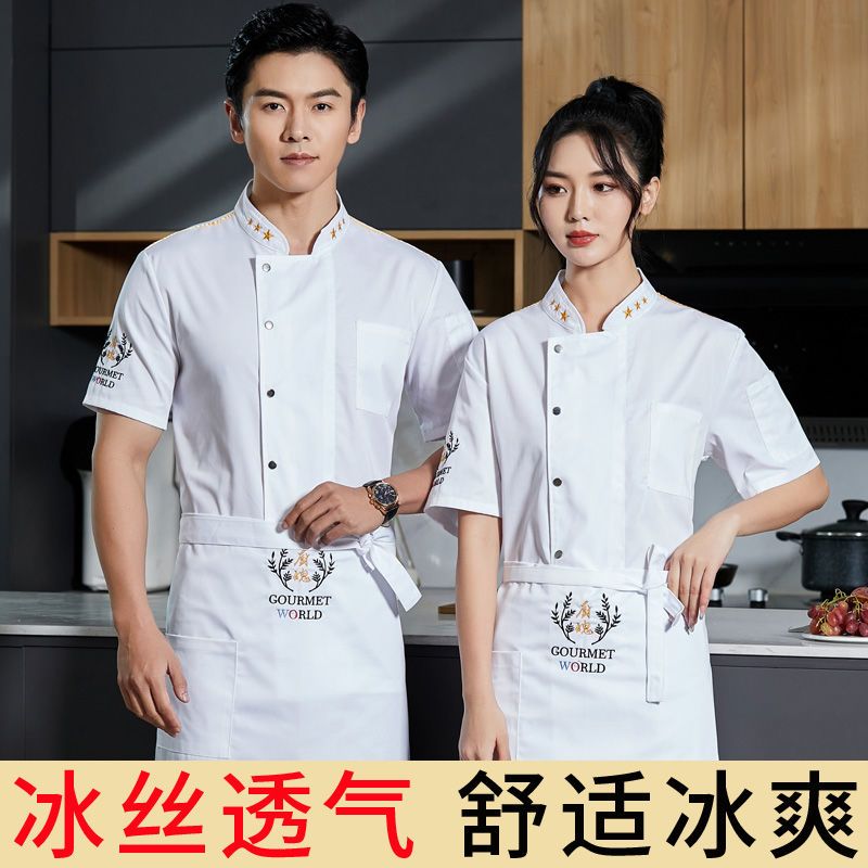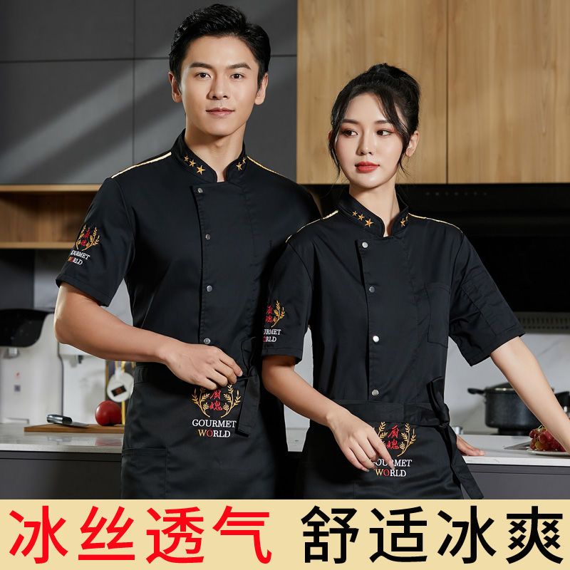 餐饮厨师工作服男短袖夏季高档酒店饭店餐厅后厨房女衣服套装定制