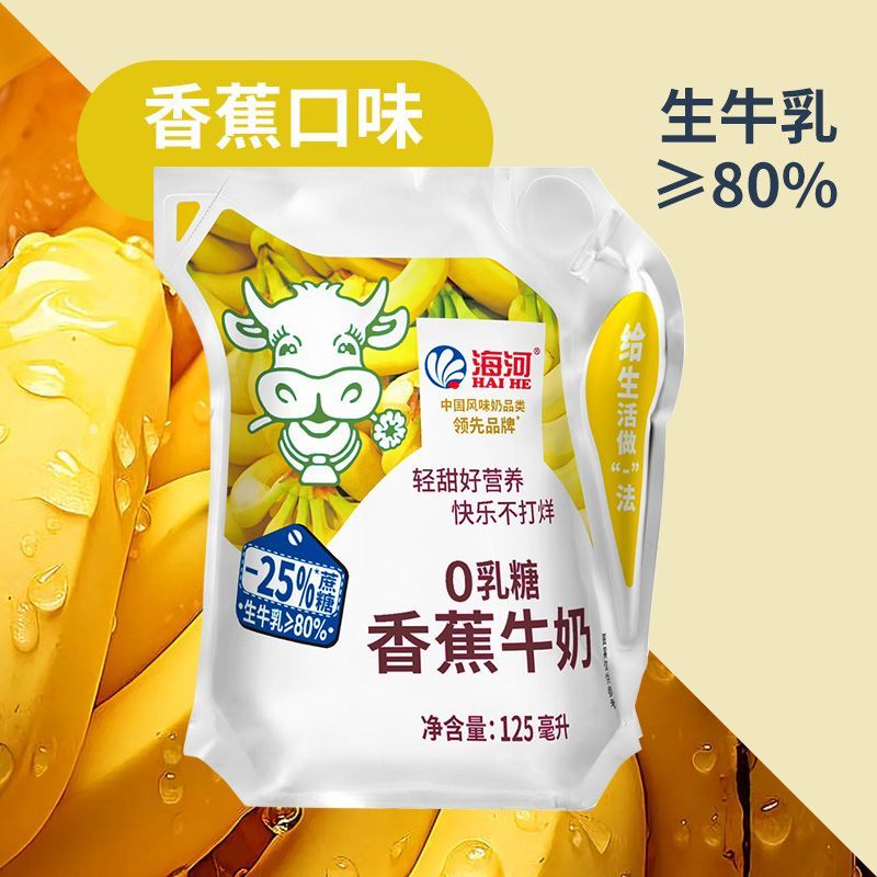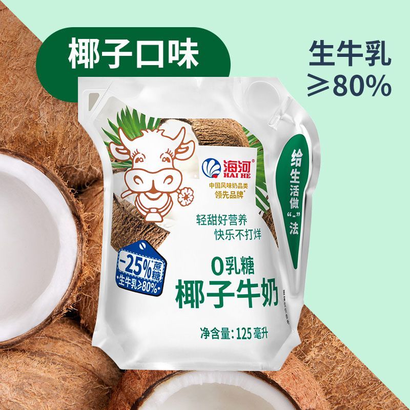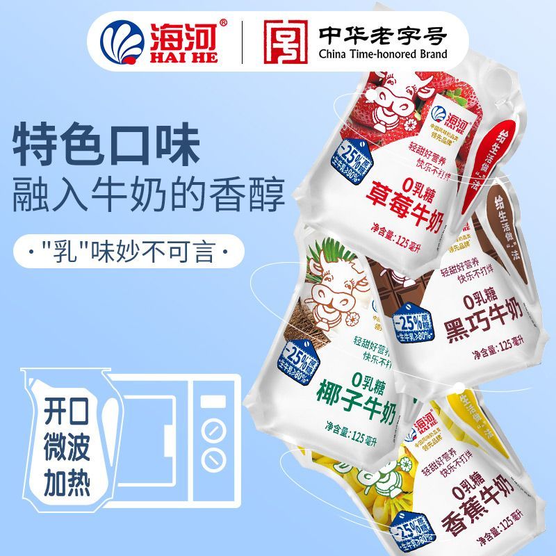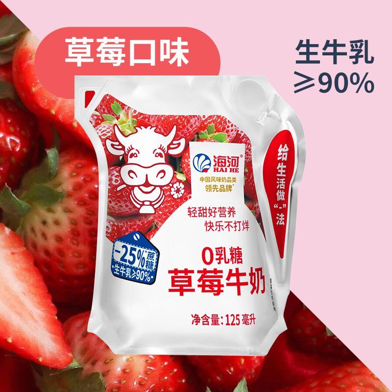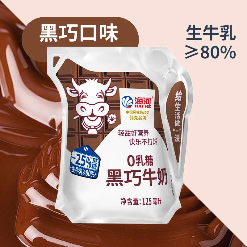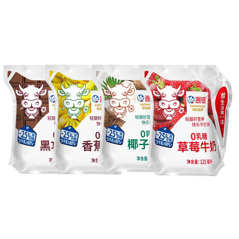 【减25%蔗糖】海河牛奶0乳糖4种口味混合13袋/箱草莓黑巧椰子口味【7天内发货】