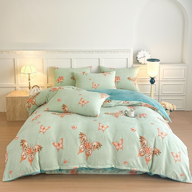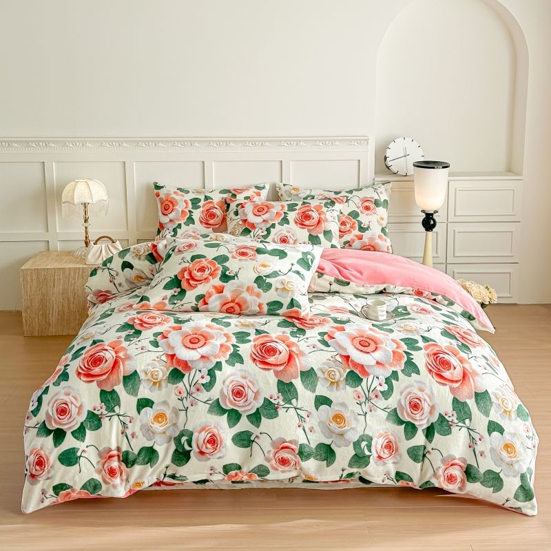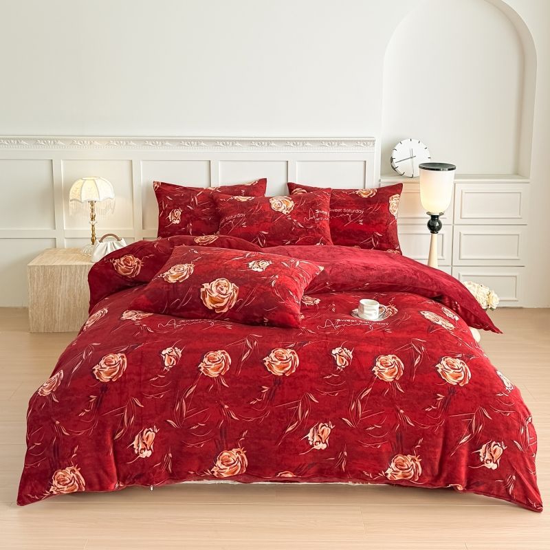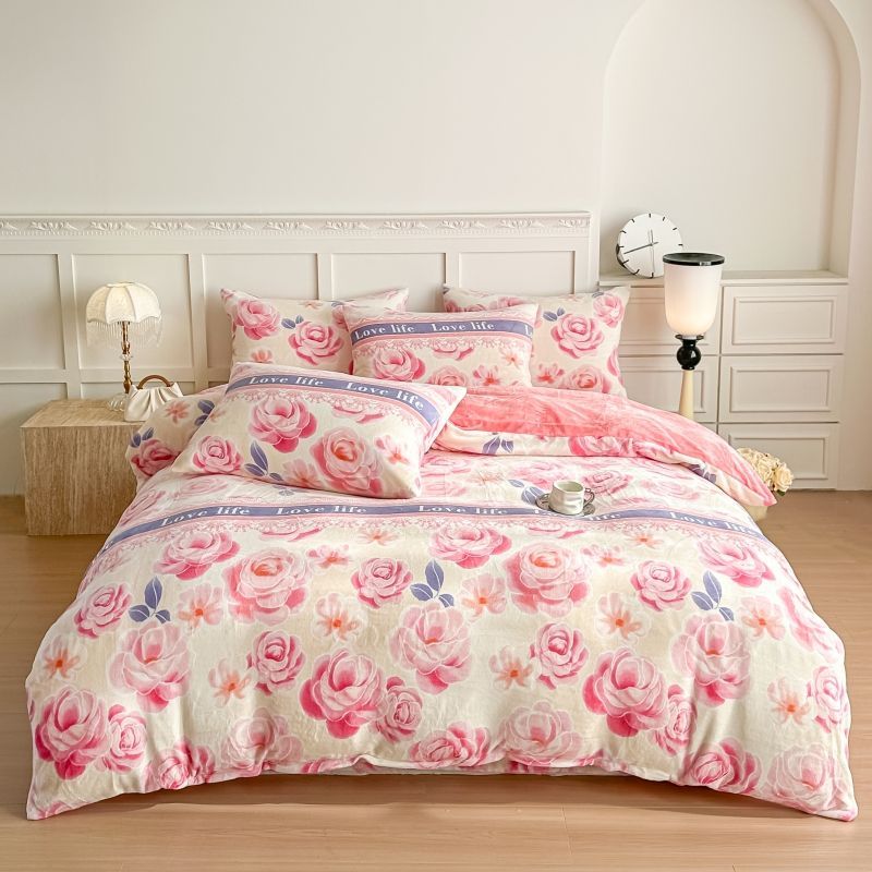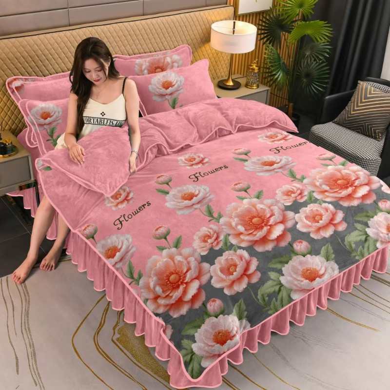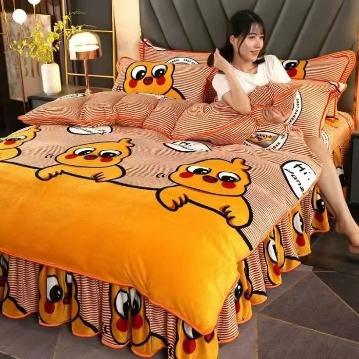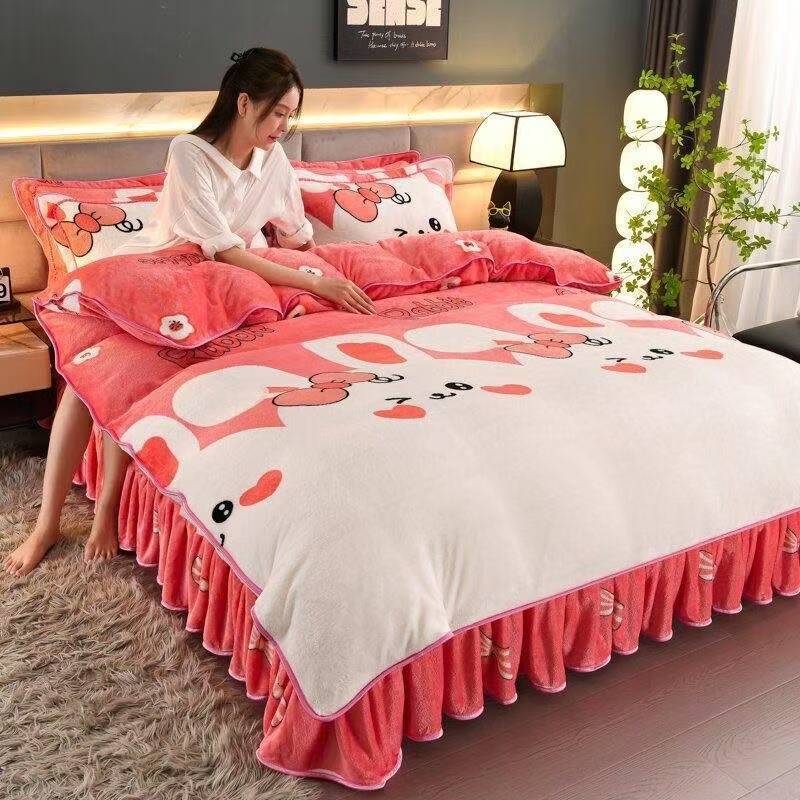 被套四件套加厚保暖双面珊瑚牛奶裙款双人床上用品冬季被罩