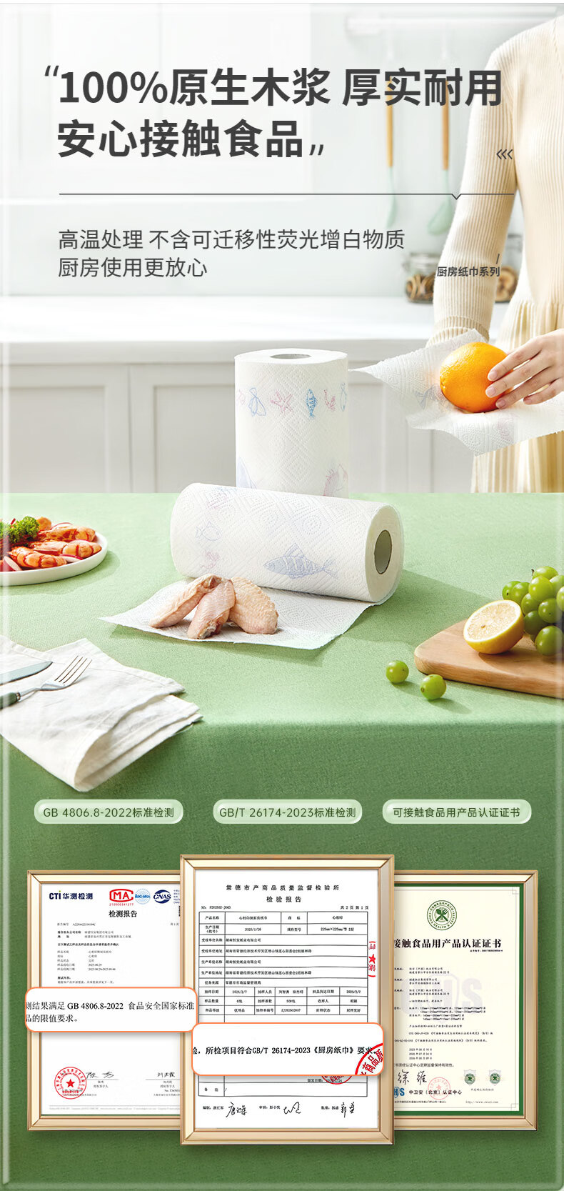 心相印厨房卷纸/厨房用纸150节 吸油锁水 厨房纸巾 食品接触级 懒人抹布