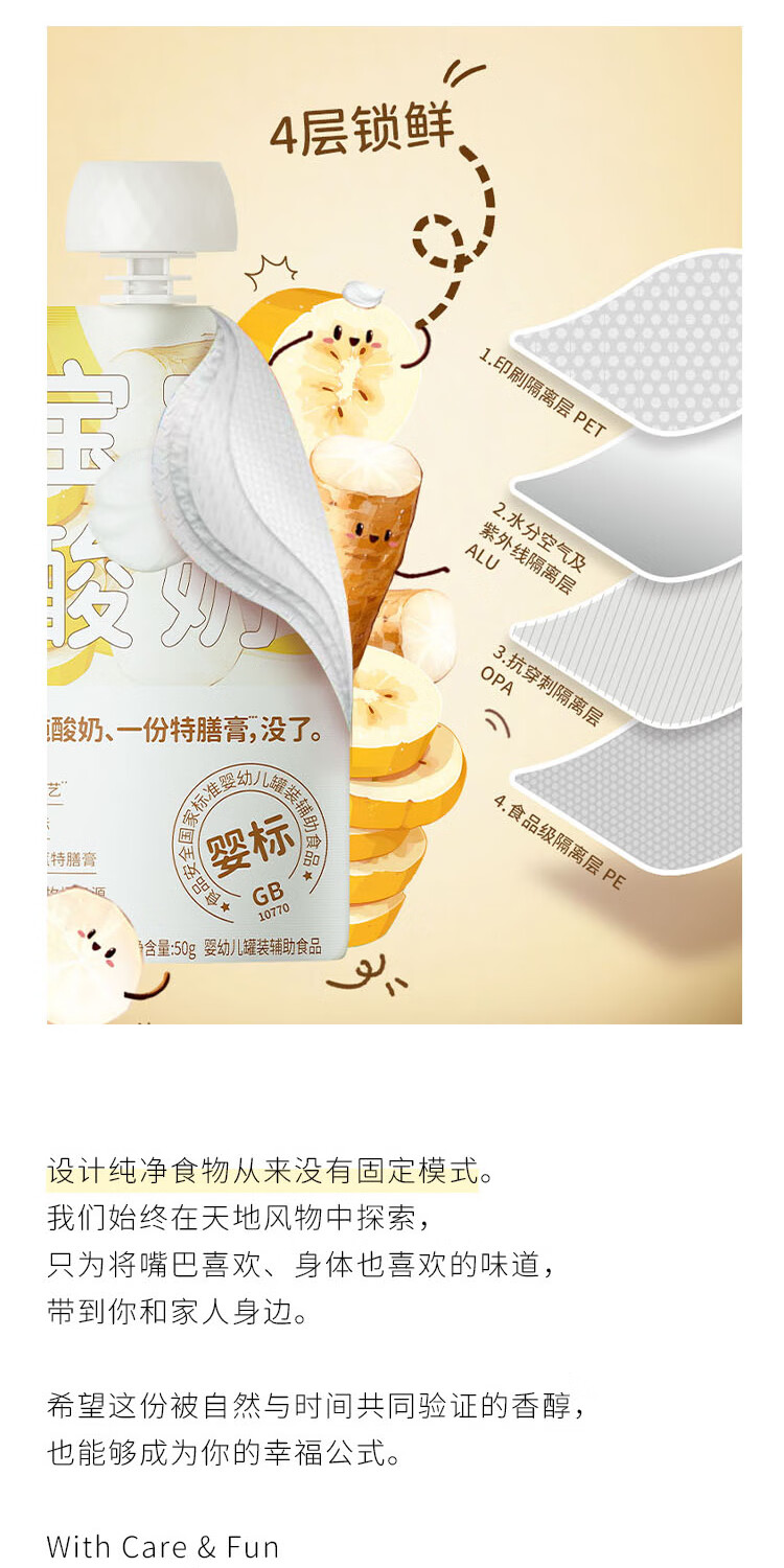 乐纯婴标宝宝酸奶山药香蕉50g*3支 辅食0添加0蔗糖儿童零食(6个月+)