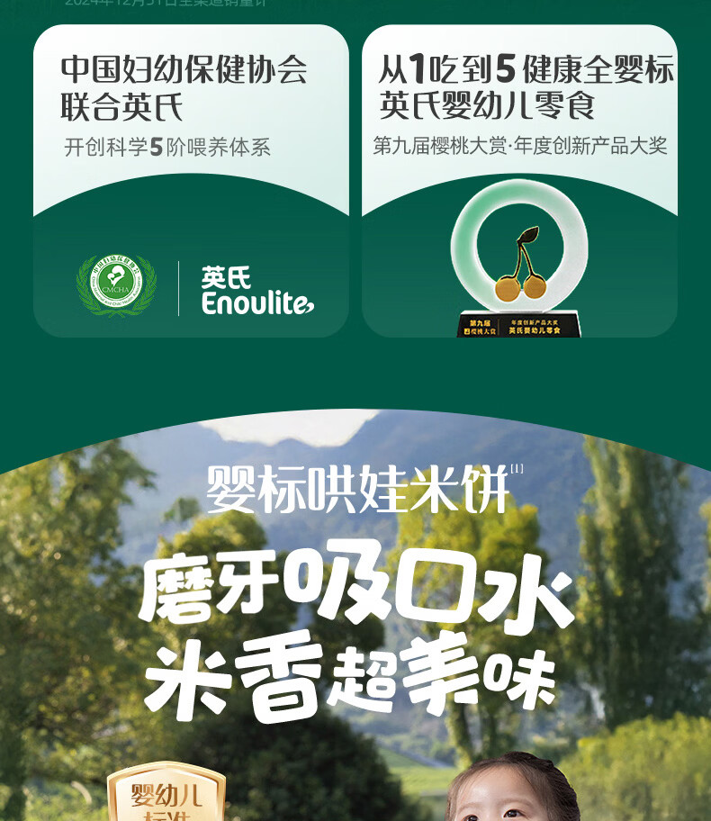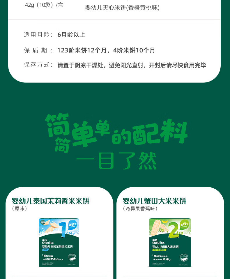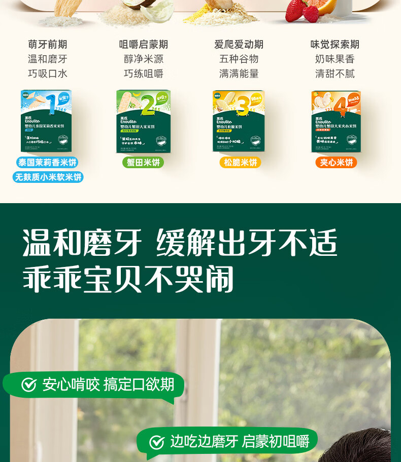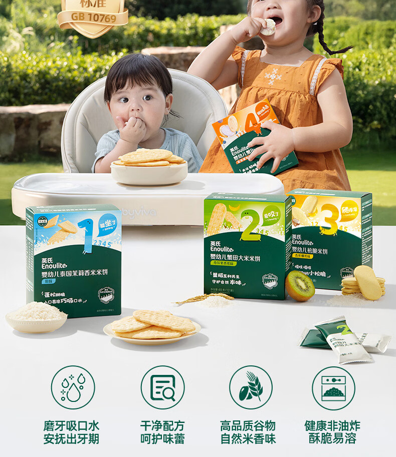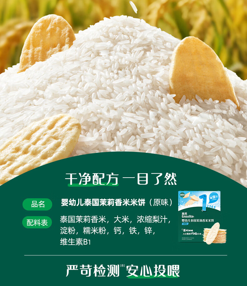 英氏(Engnice)婴幼儿米饼原味 婴儿宝宝零食 儿童磨牙饼干零食48g 6个月以上