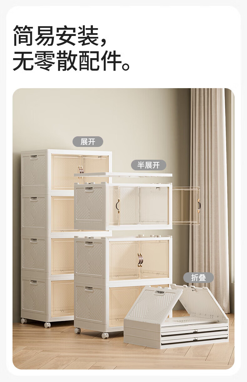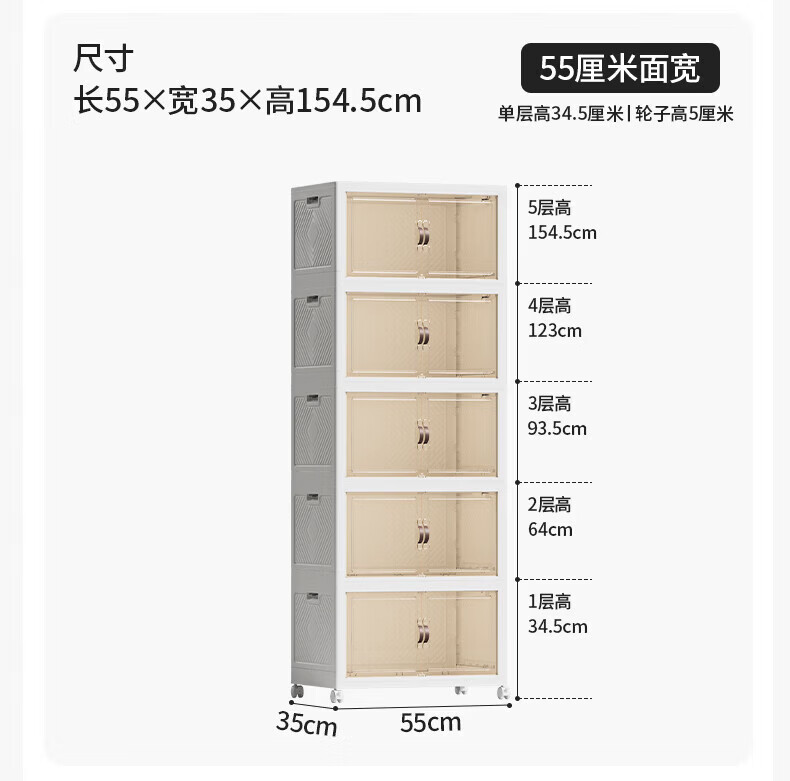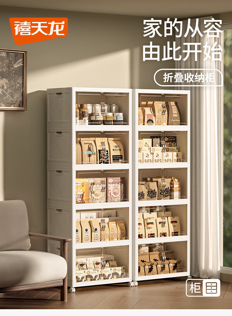 禧天龙收纳柜免安装可折叠衣柜零食储物柜厨房客厅杂物玩具收纳箱柜子 65cm 面宽【65*42*184.5cm五层】 五层【超大容量】