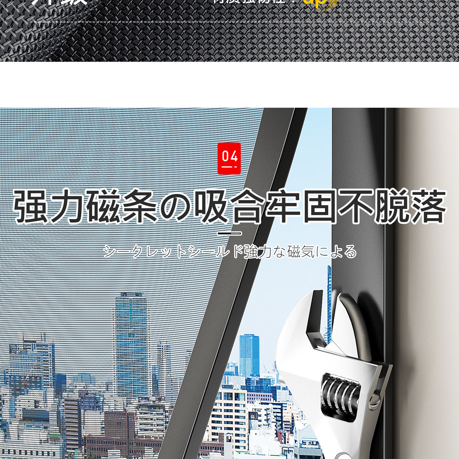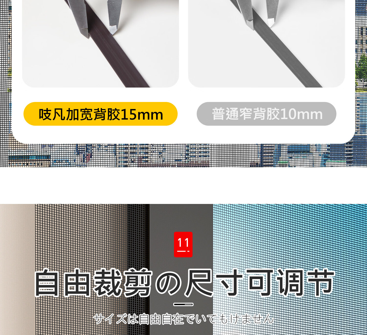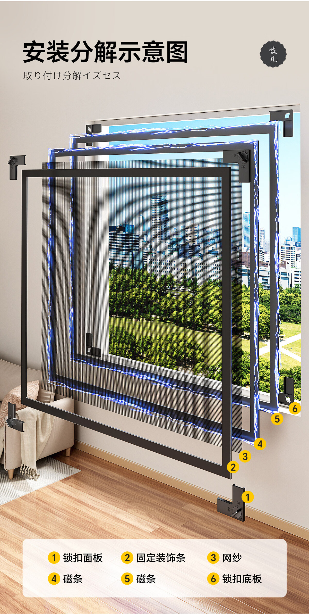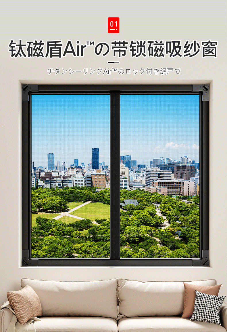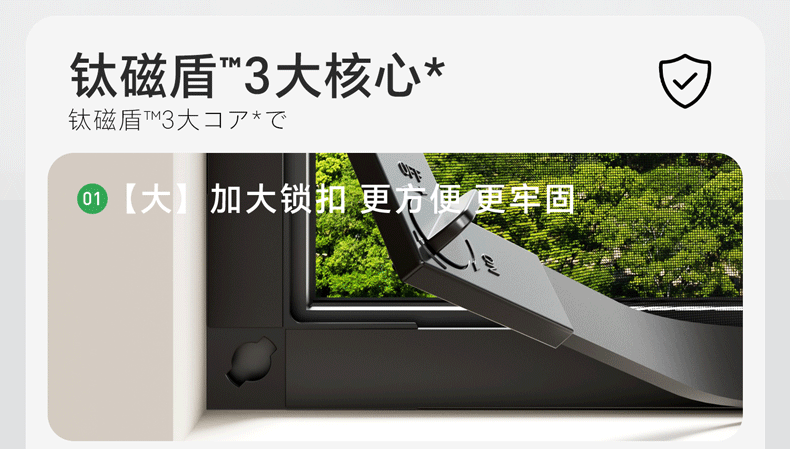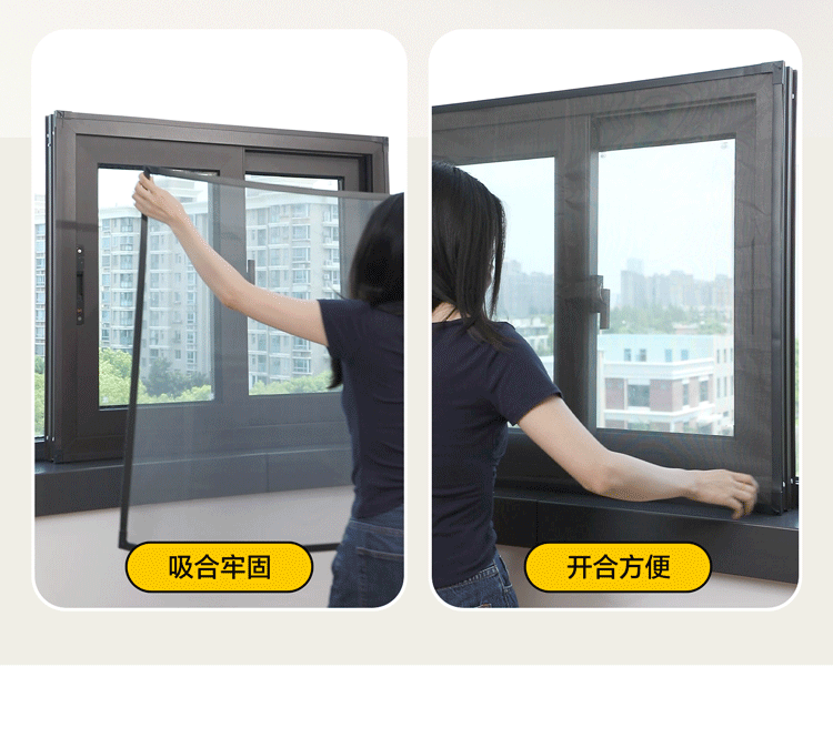 吱凡日本磁吸防蚊纱窗网家用自装窗户自粘式隐形金刚网阳台纱网窗纱帘 钛磁盾-白框&灰纱【防掉大锁扣丨强力磁吸】 50x80cm