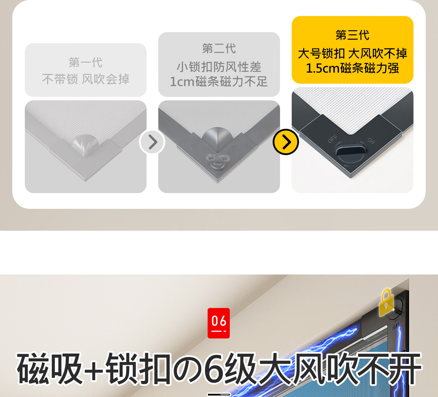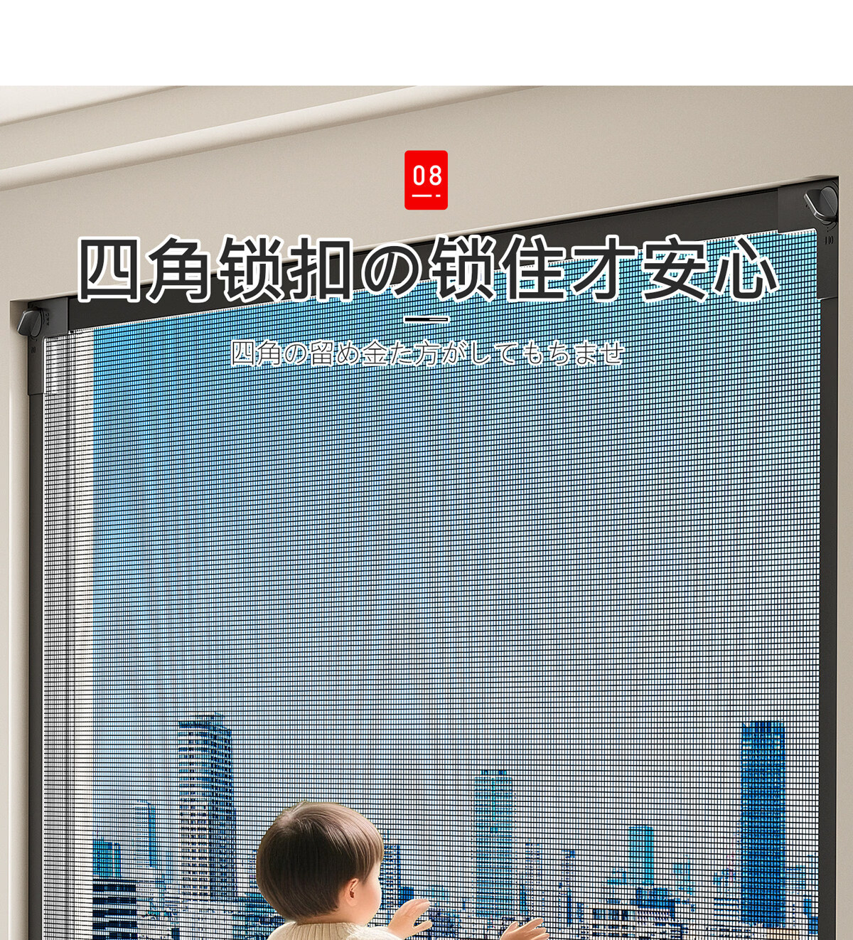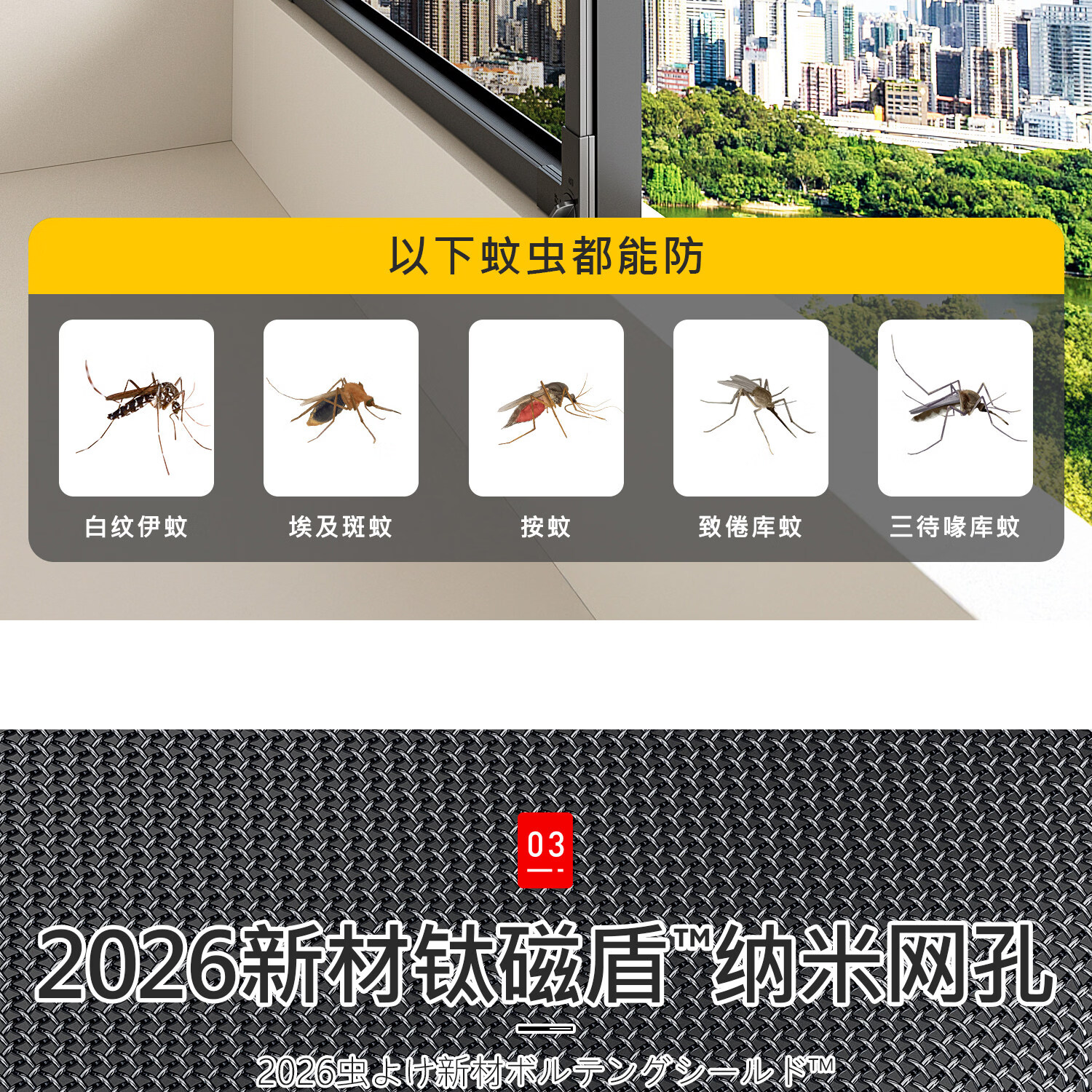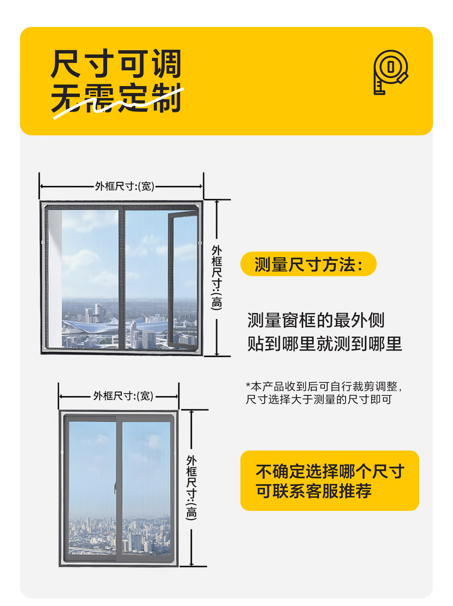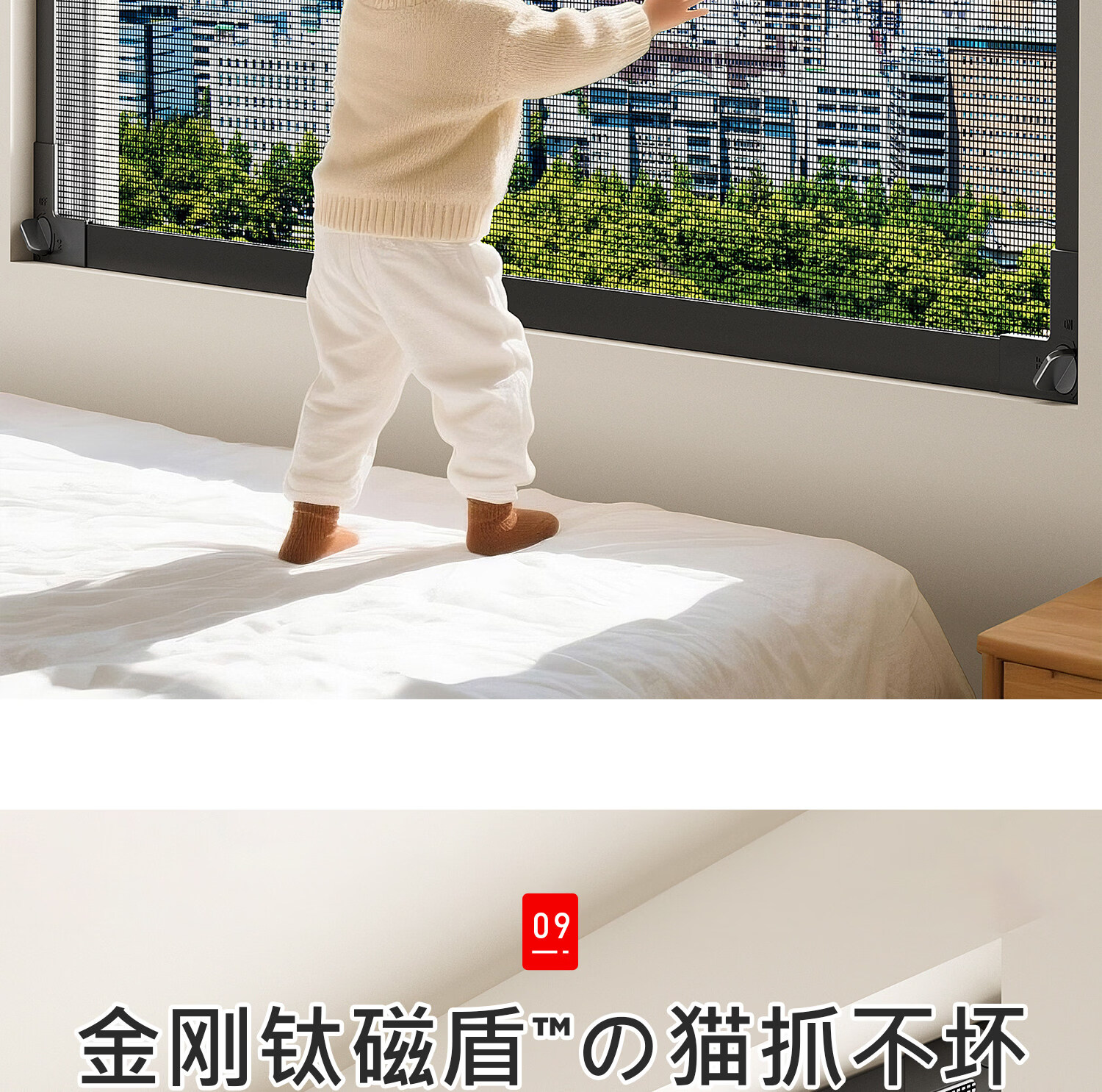 吱凡日本磁吸防蚊纱窗网家用自装窗户自粘式隐形金刚网阳台纱网窗纱帘 钛磁盾-白框&灰纱【防掉大锁扣丨强力磁吸】 50x80cm