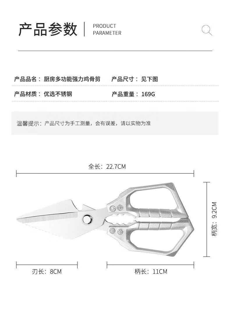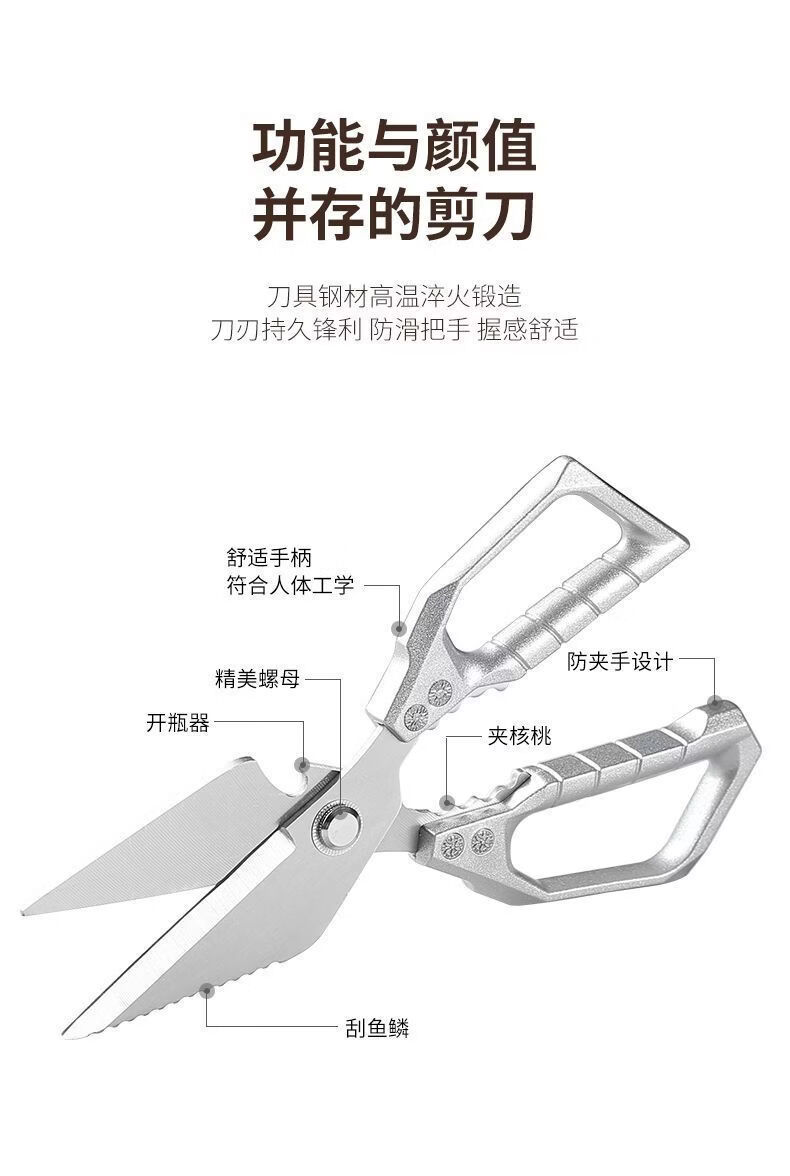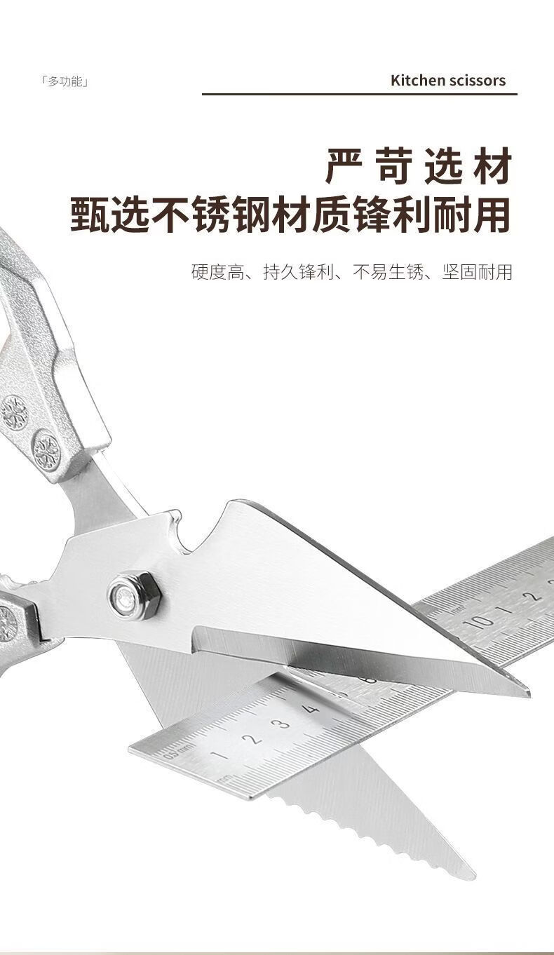 强力锋利鸡骨剪加厚不锈钢家用多功能骨头剪厨房专用烤肉杀鱼剪子 【德国S级品质】*(厨房必备)强力鸡骨剪