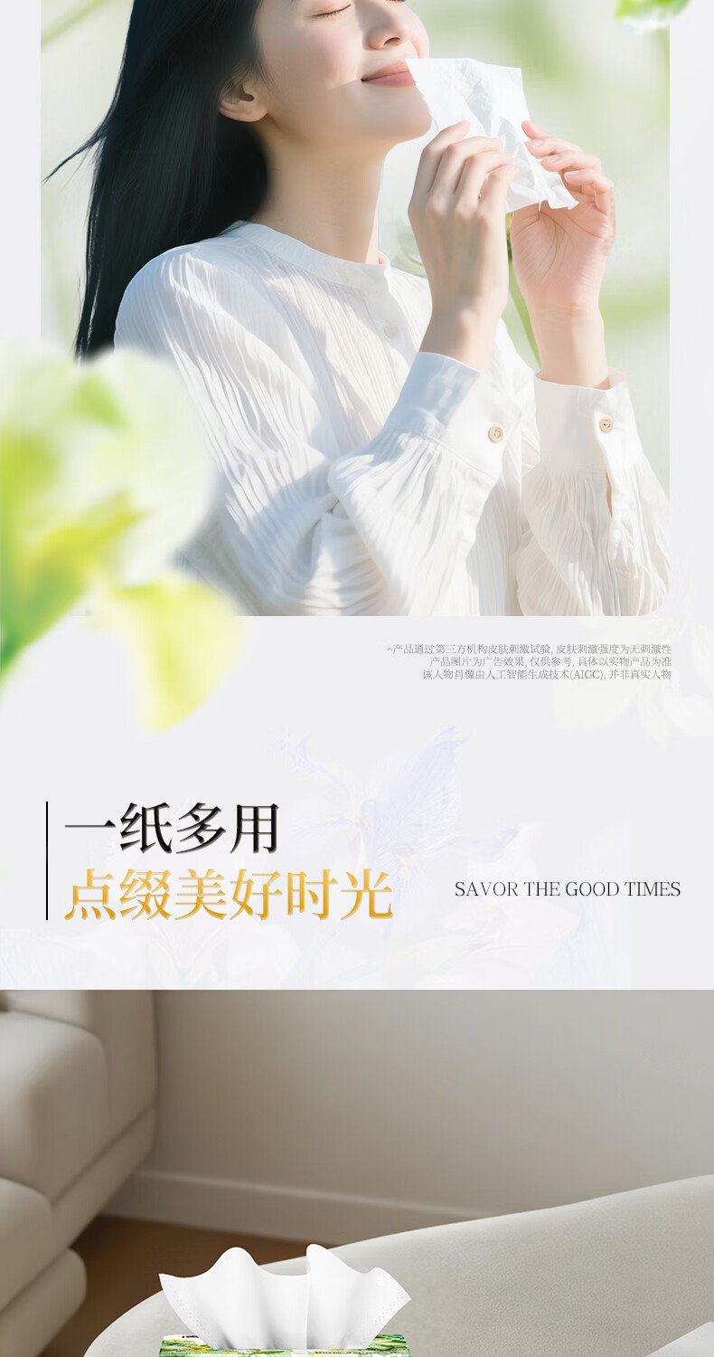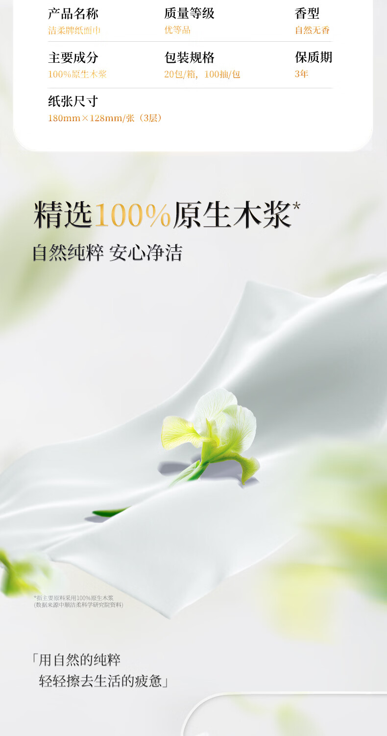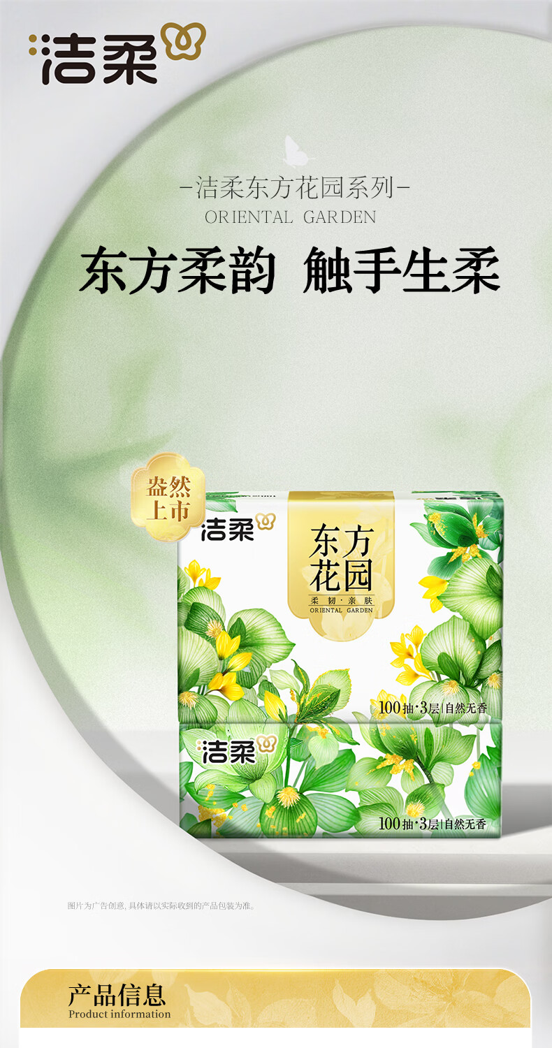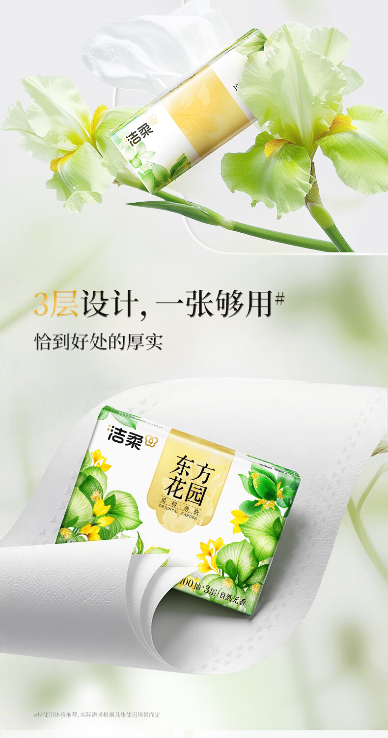 C&S东方花园抽纸3层100抽可湿水无香面巾纸餐巾纸家庭装整箱 3层 100抽*10包