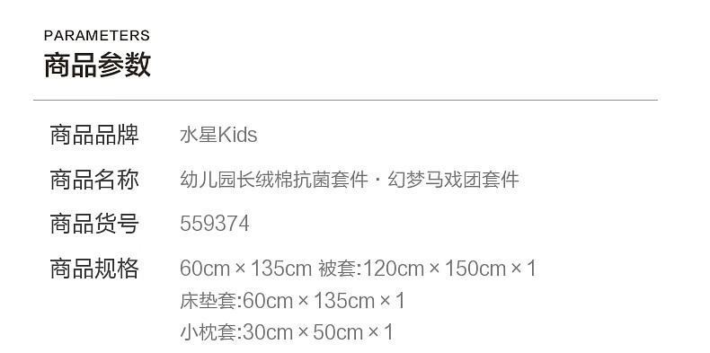 水星家纺幼儿园长绒棉抗菌套件·幻梦马戏团套件 幼儿园长绒棉抗菌套件·幻梦马戏团 床笠款 (被套120*150cm)