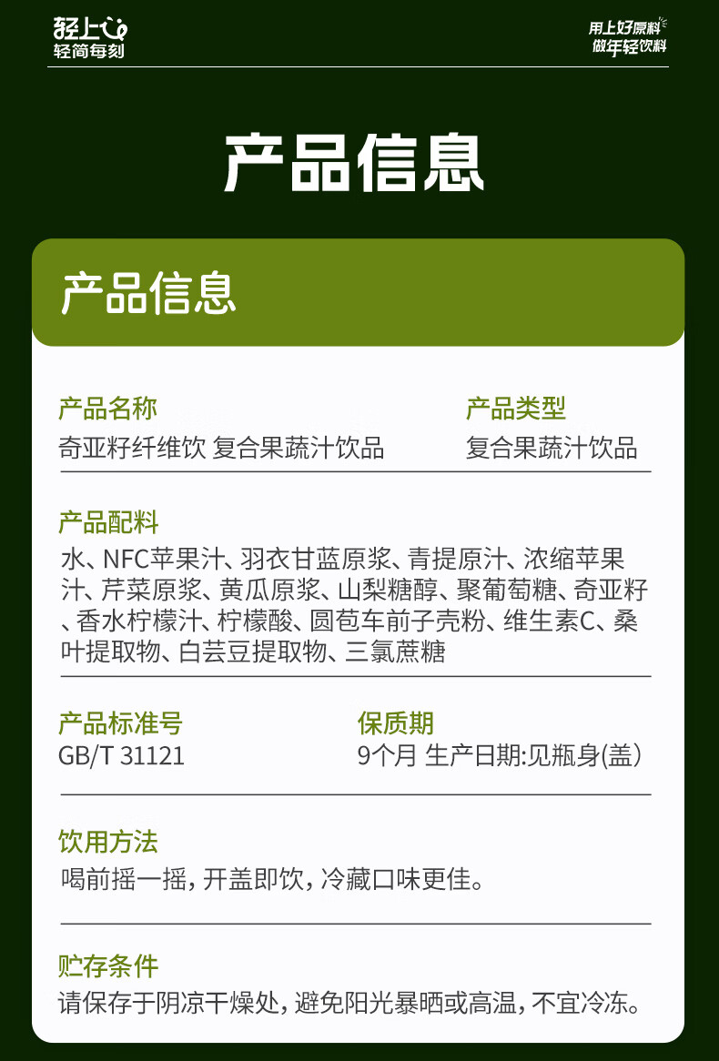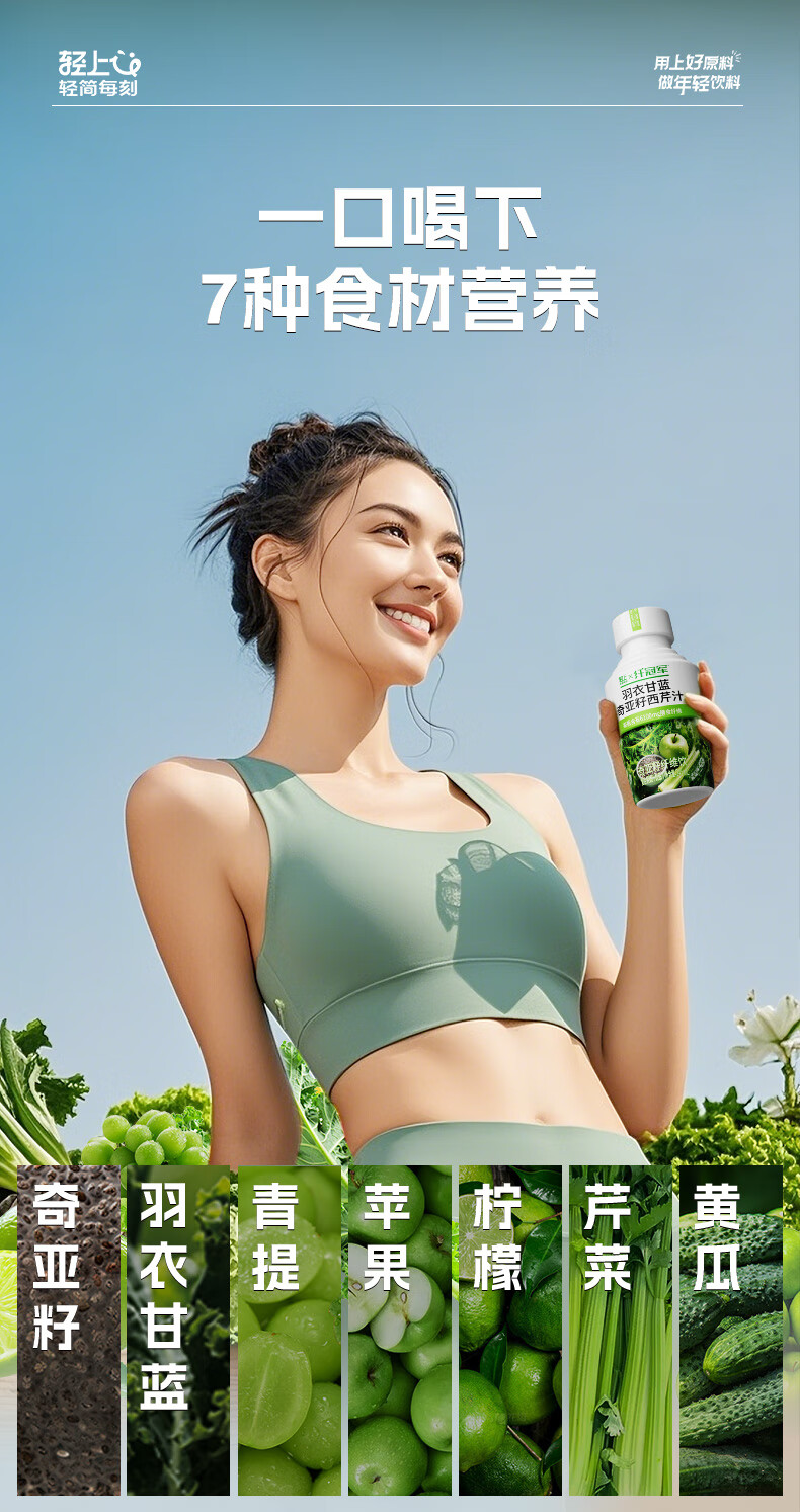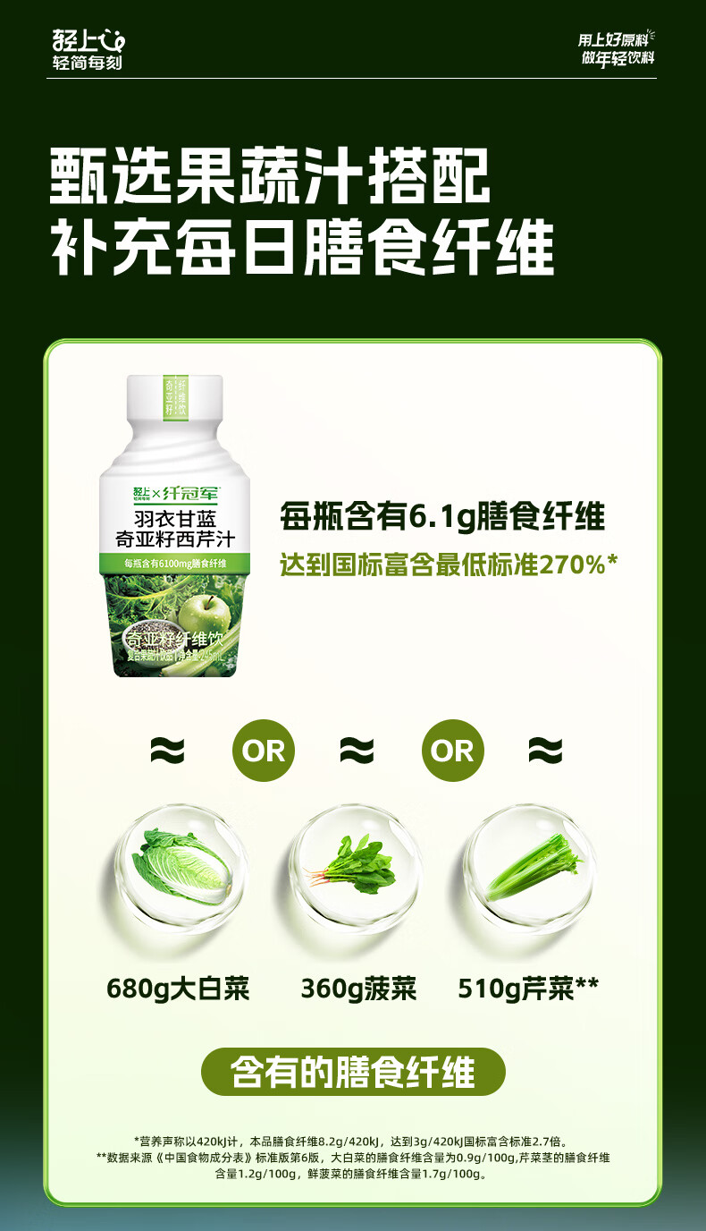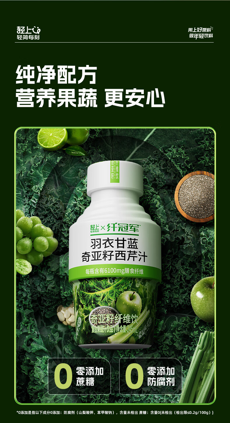 纤冠军羽衣甘蓝汁奇亚籽果蔬西芹汁高膳食纤维饮料代餐 羽衣甘蓝奇亚籽西芹汁245ml*30瓶