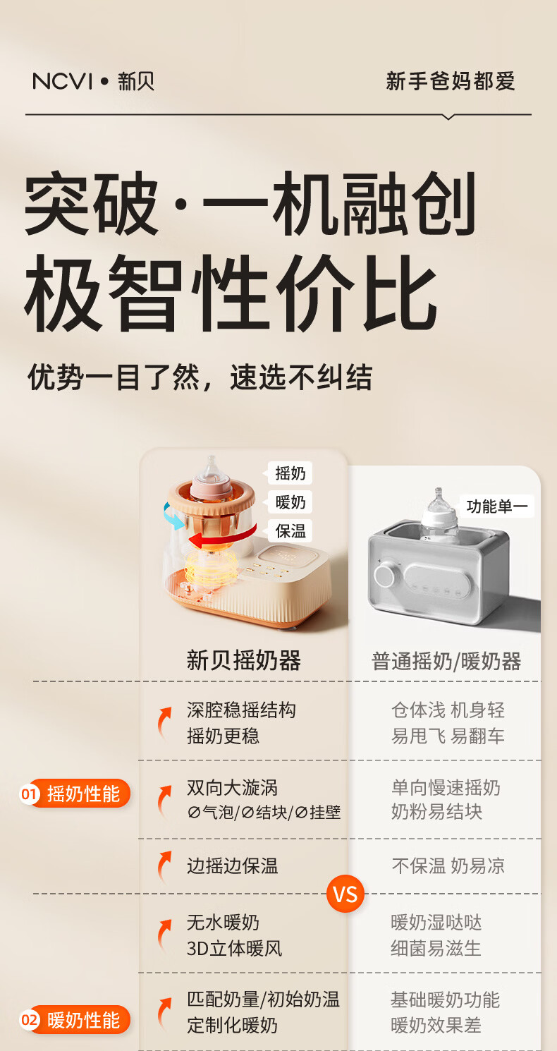 新贝摇奶器暖奶一体二合一温奶器热奶器摇奶机无水暖奶泡奶机8266
