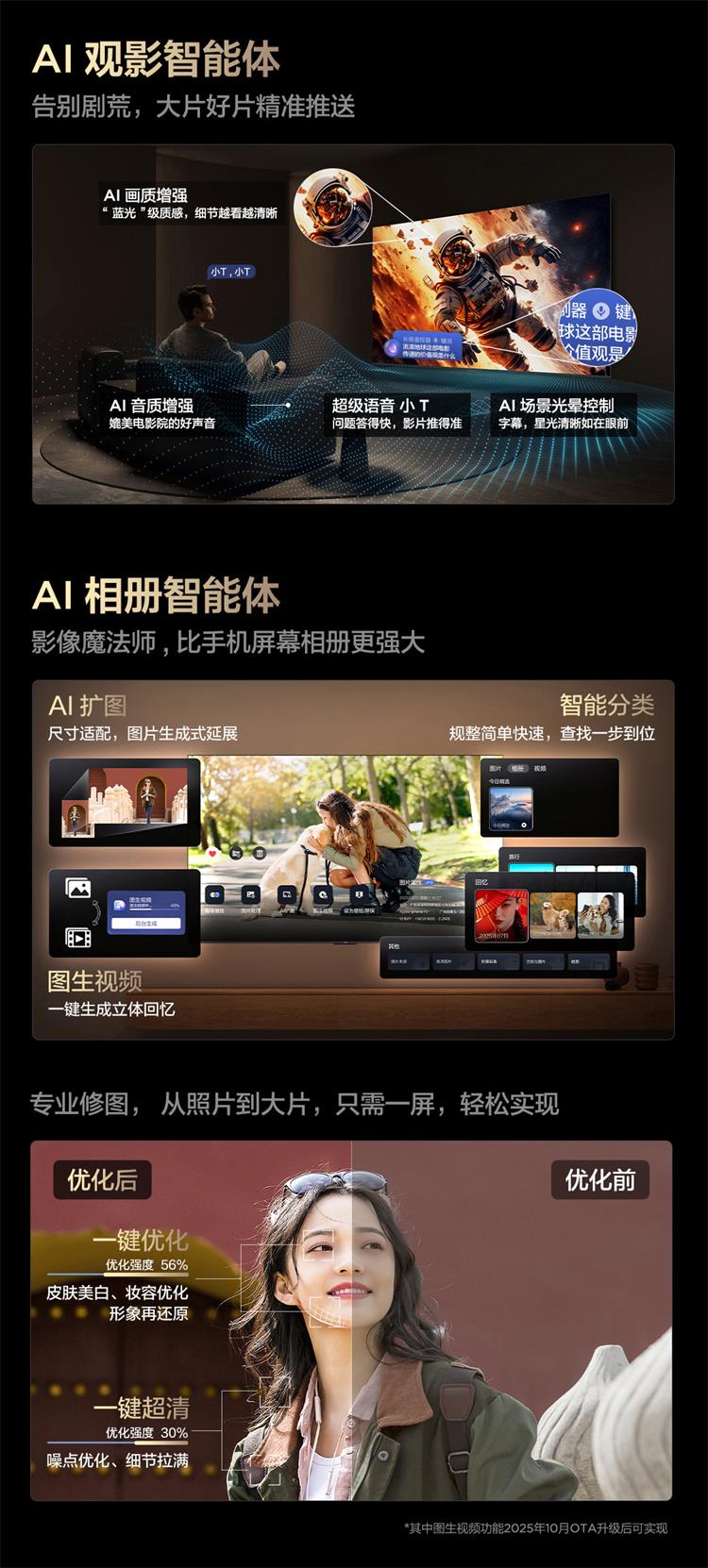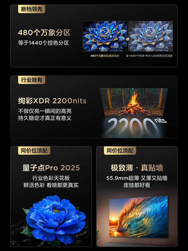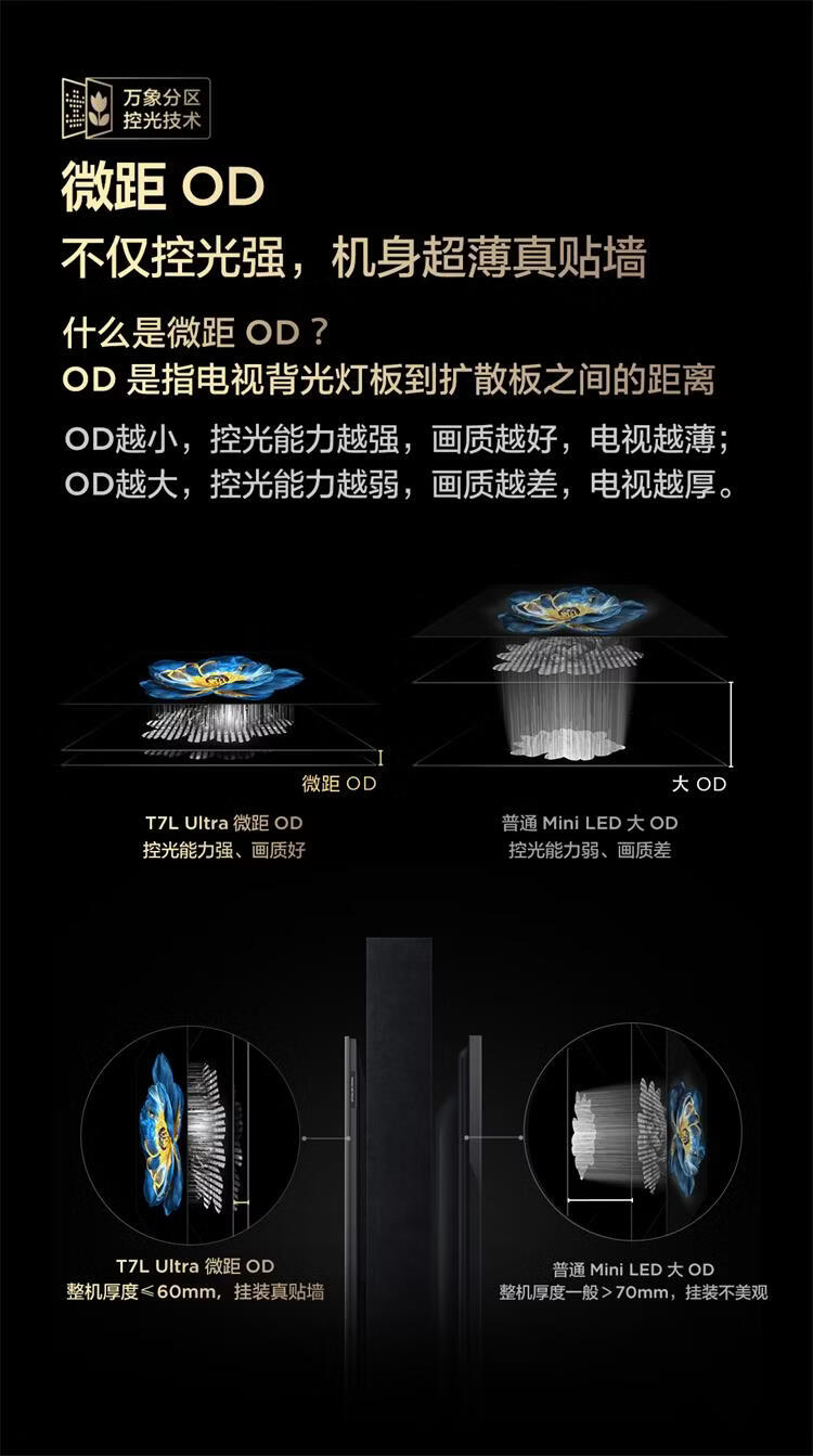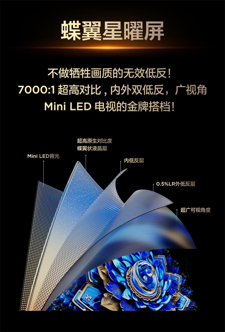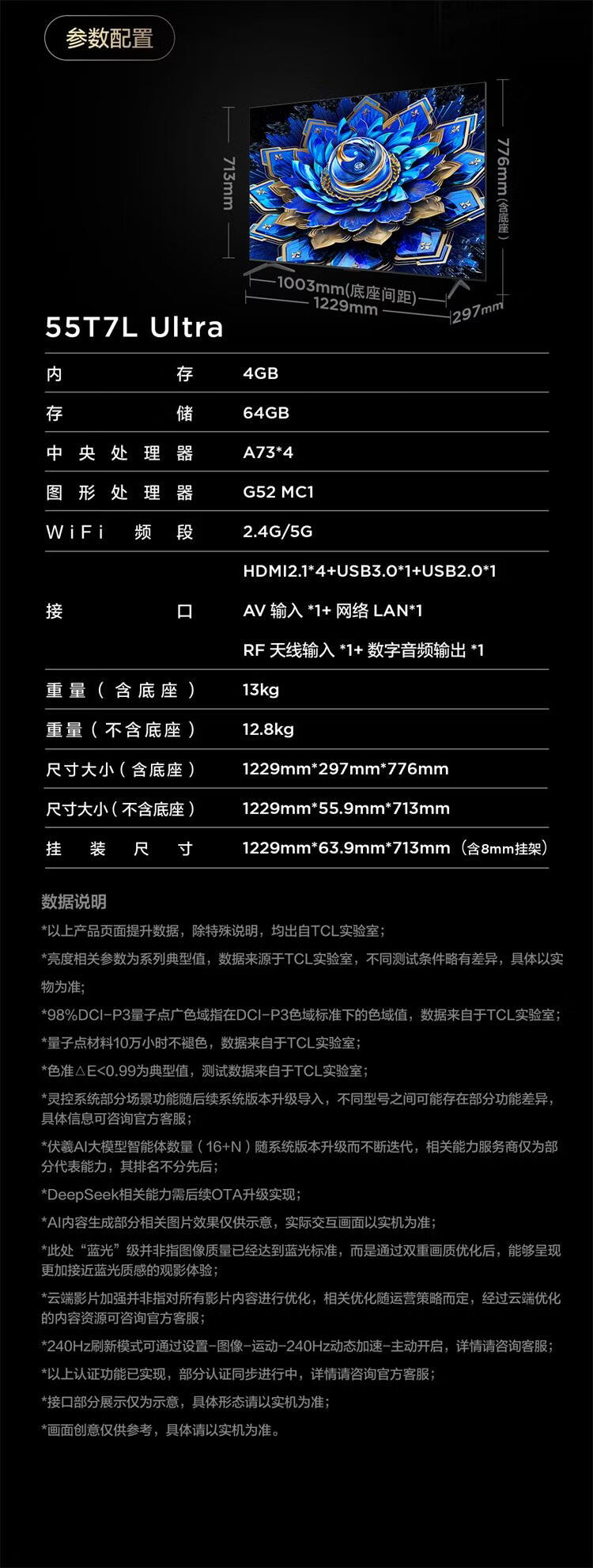 TCL【咨询低价】电视 55T7L Ultra 55英寸 QD-Mini LED 蝶翼星曜屏tcl电视官方 55英寸